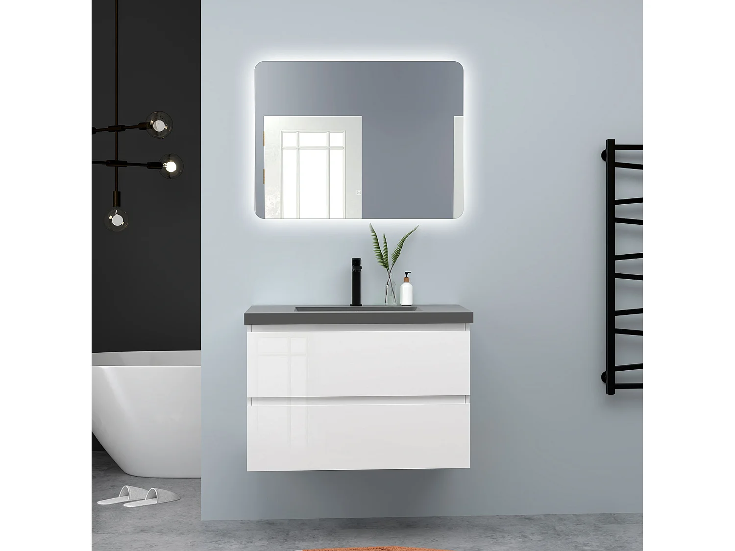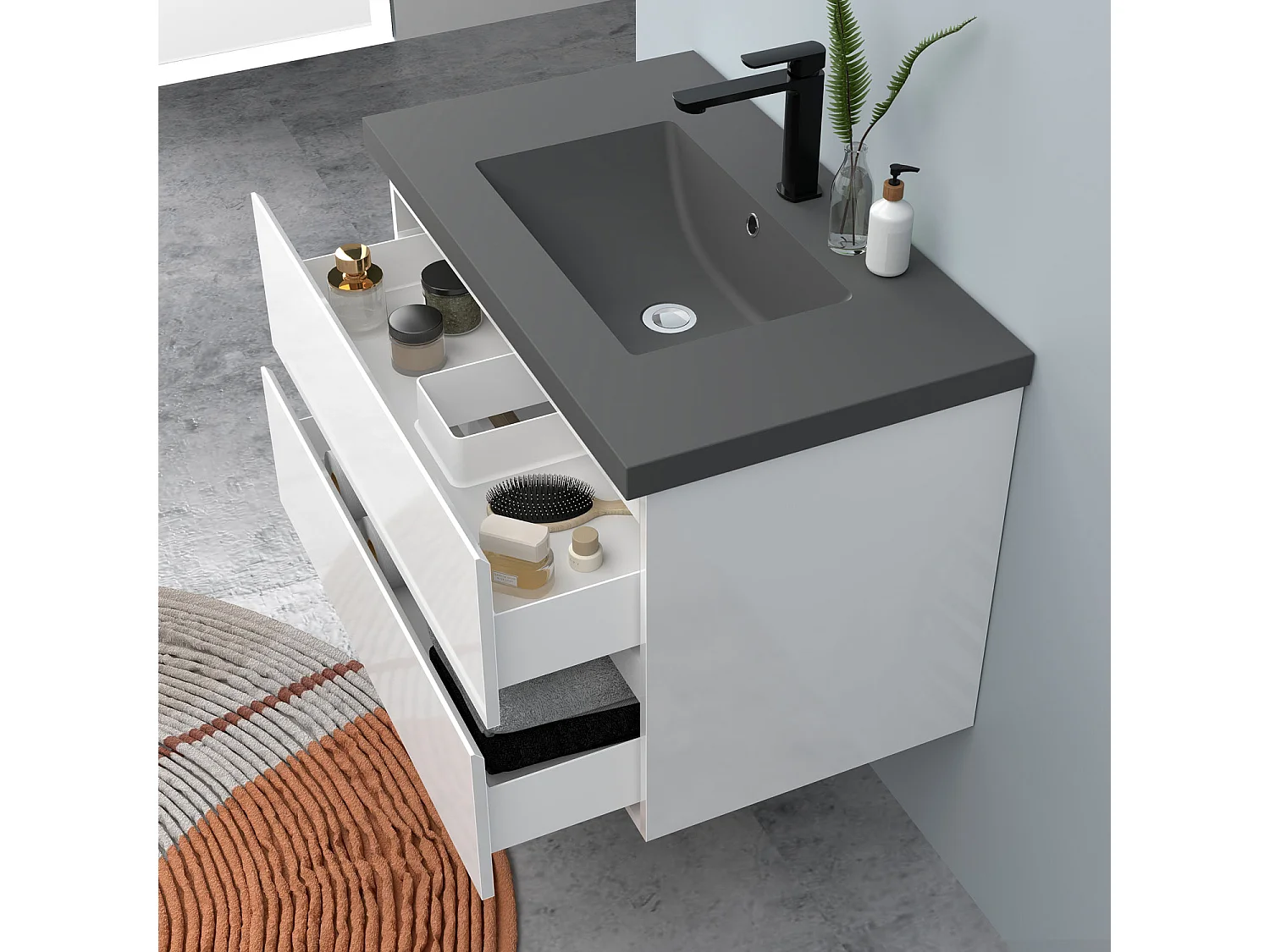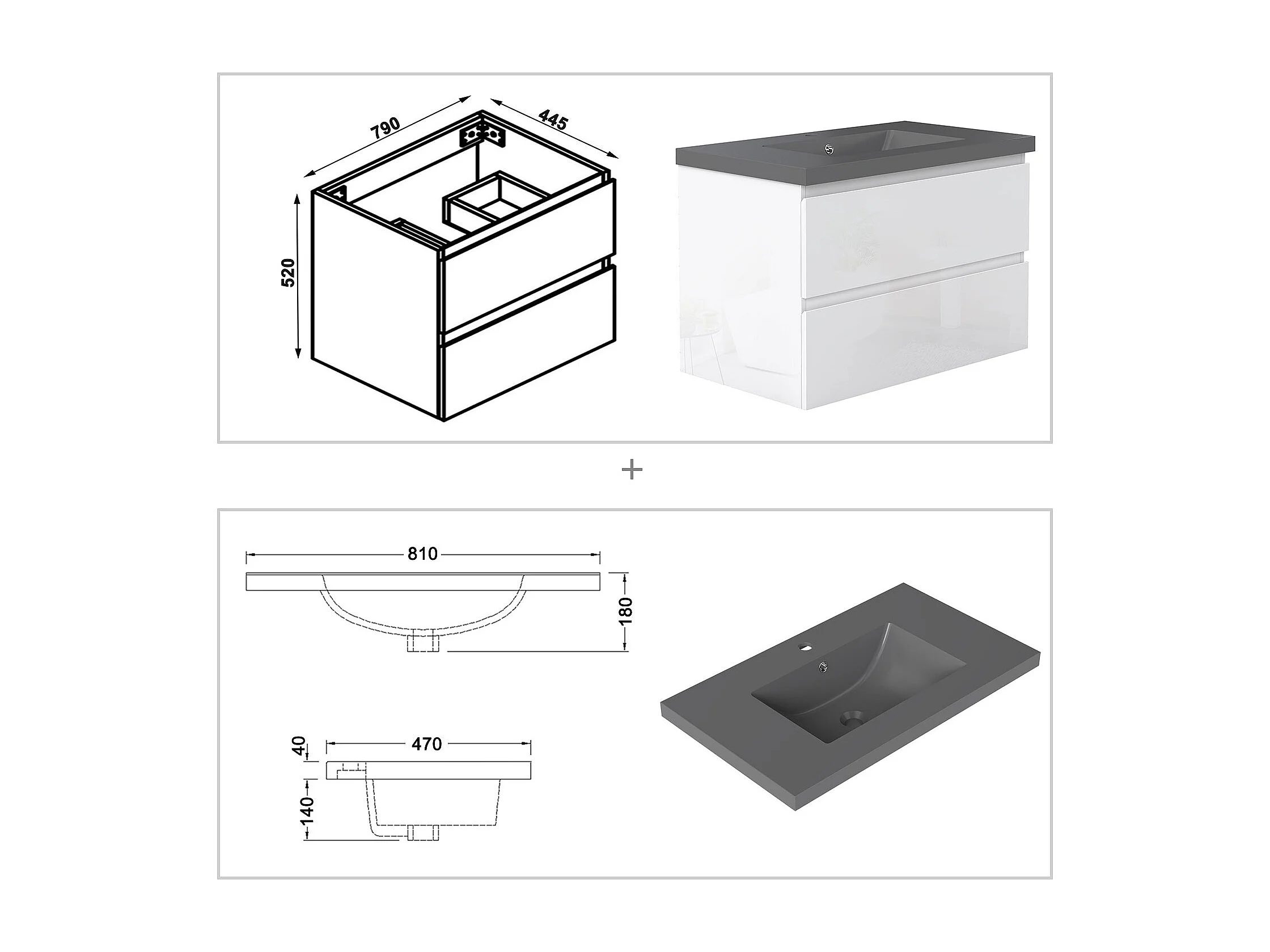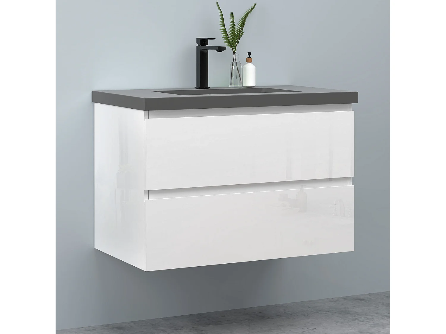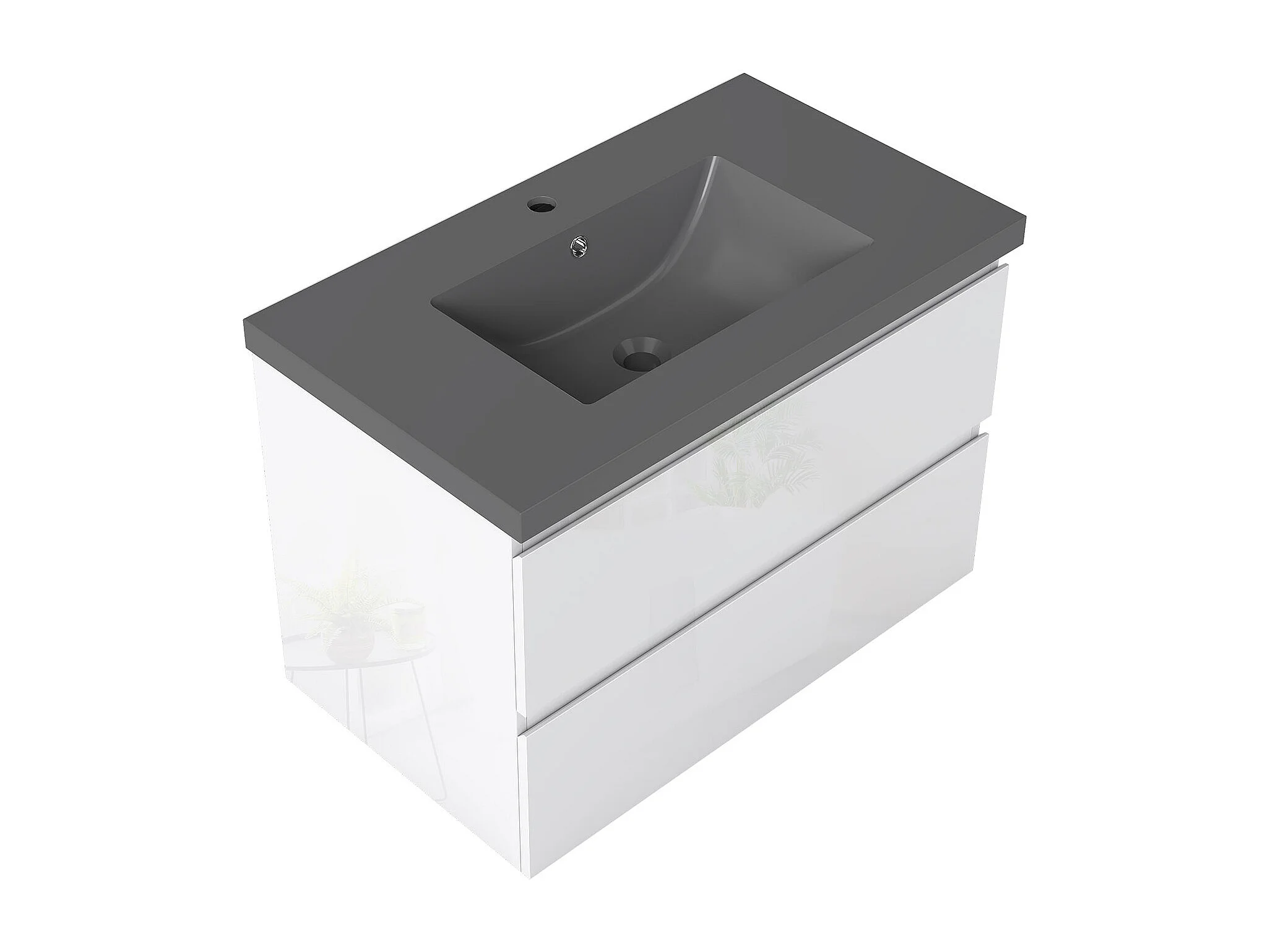 AICA Waschbeckenunterschrank hängend 80cm Dunkelgrau Mineralguss-Waschbecken mit Unterschrank - Hochglanz Weiß - CINIC