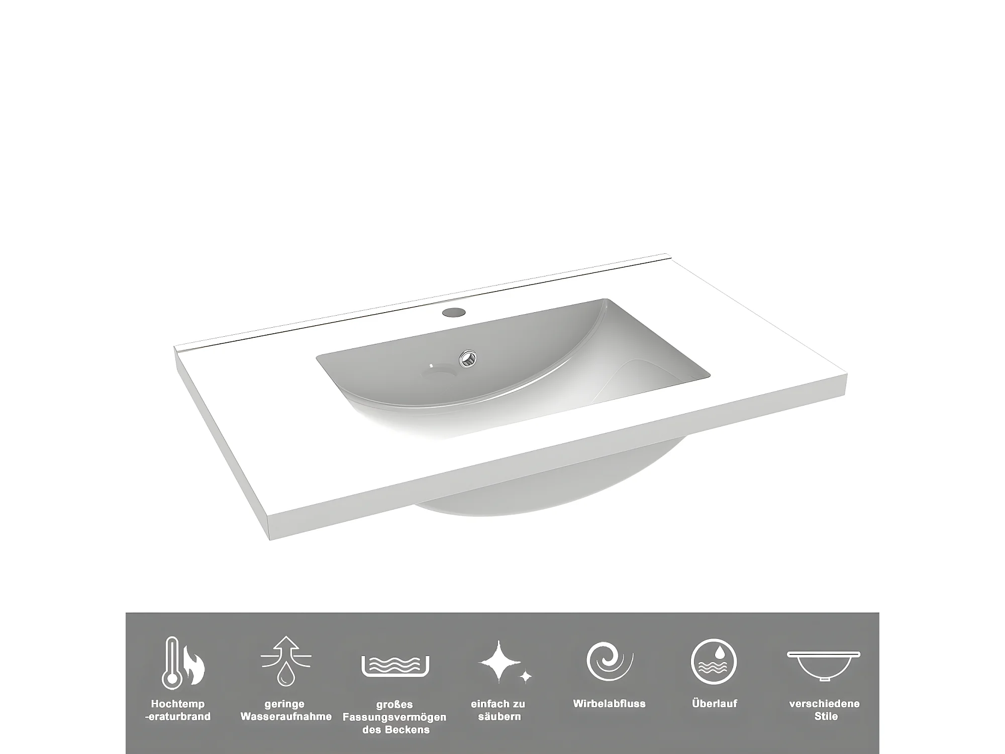 AICA Waschbeckenunterschrank hängend 80cm Keramik Waschtisch mit Unterschrank - Hochglanz Schwarz - CINIC