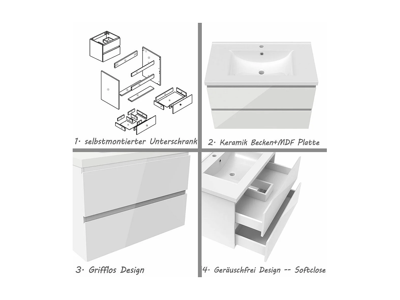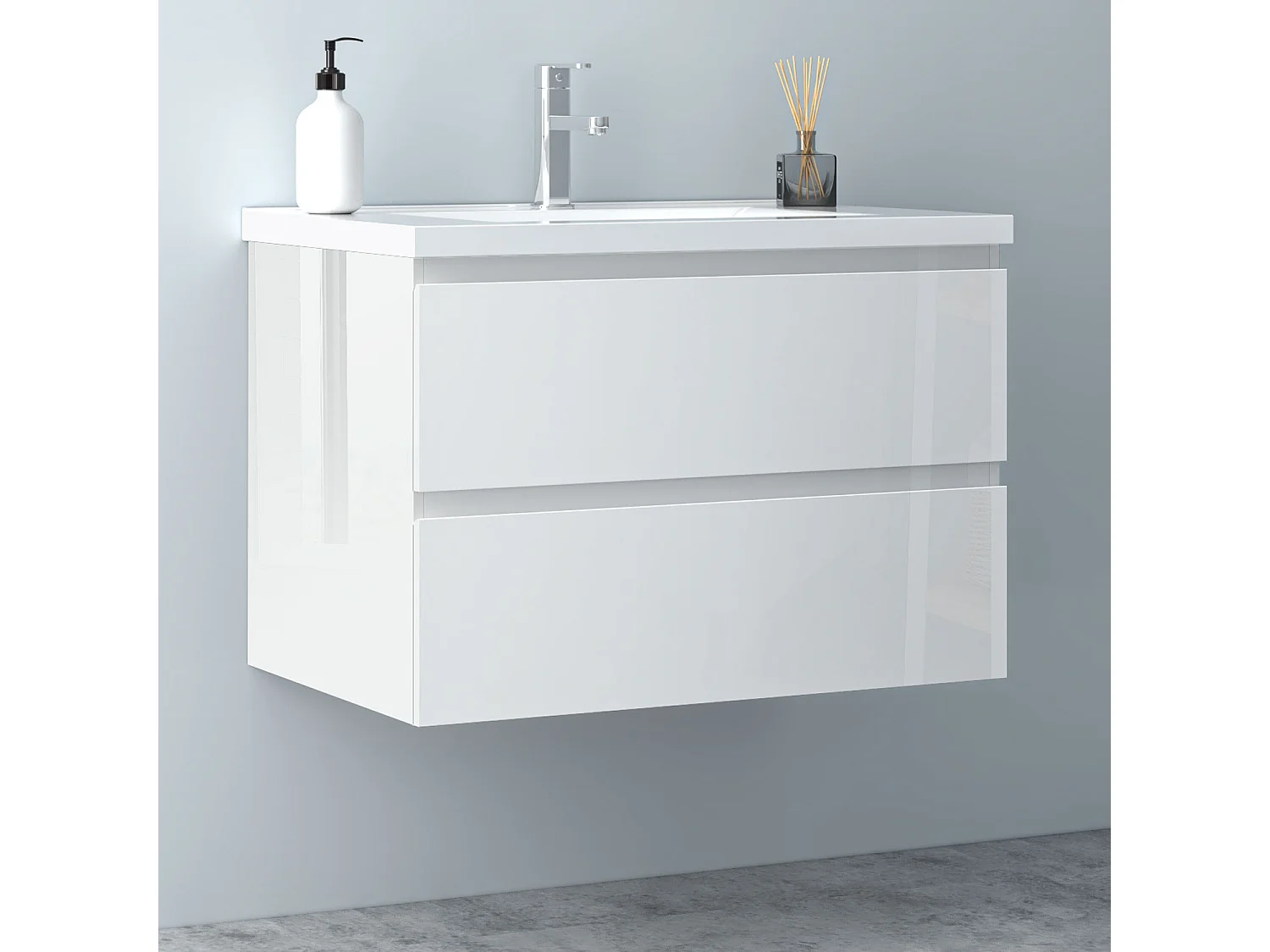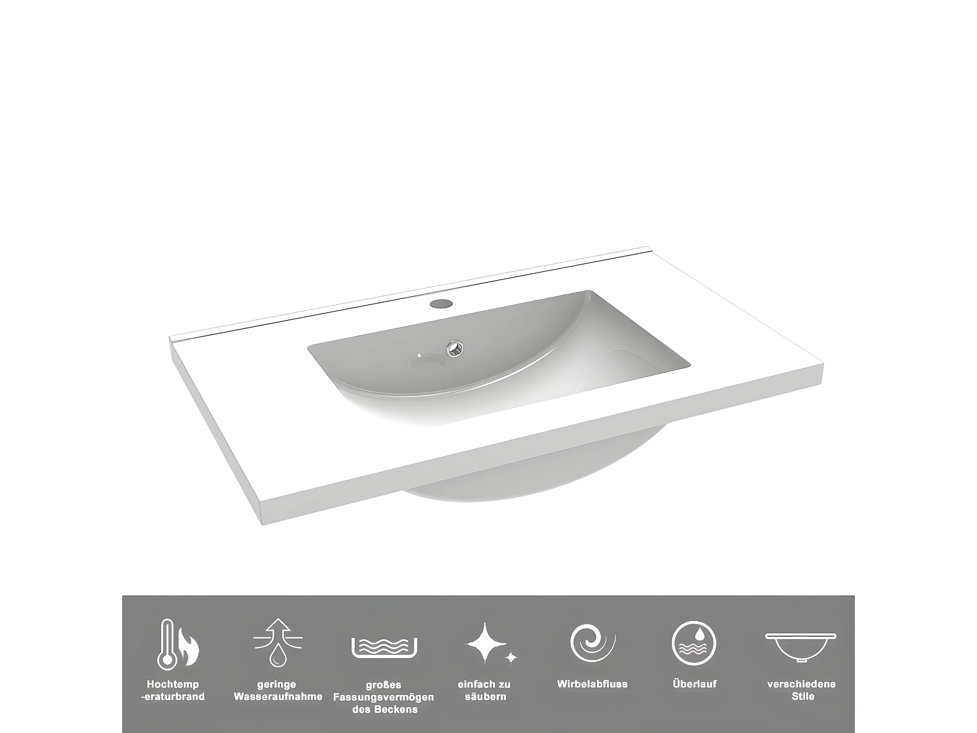 AICA Waschbeckenunterschrank hängend 80cm Keramik Waschtisch mit Unterschrank - Hochglanz Weiß - CINIC