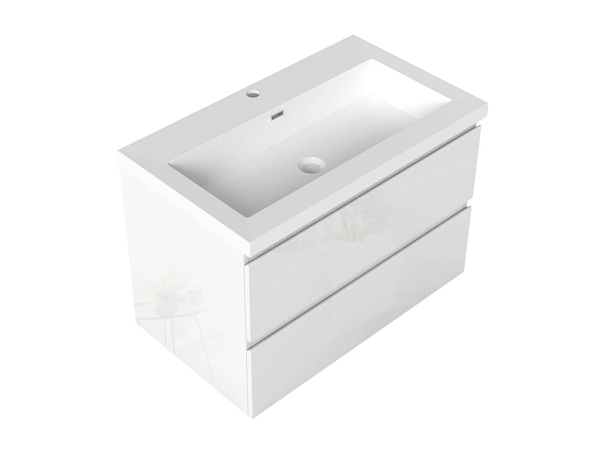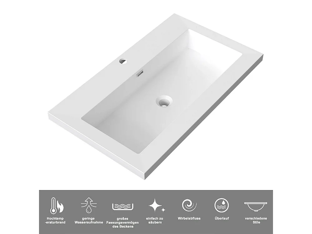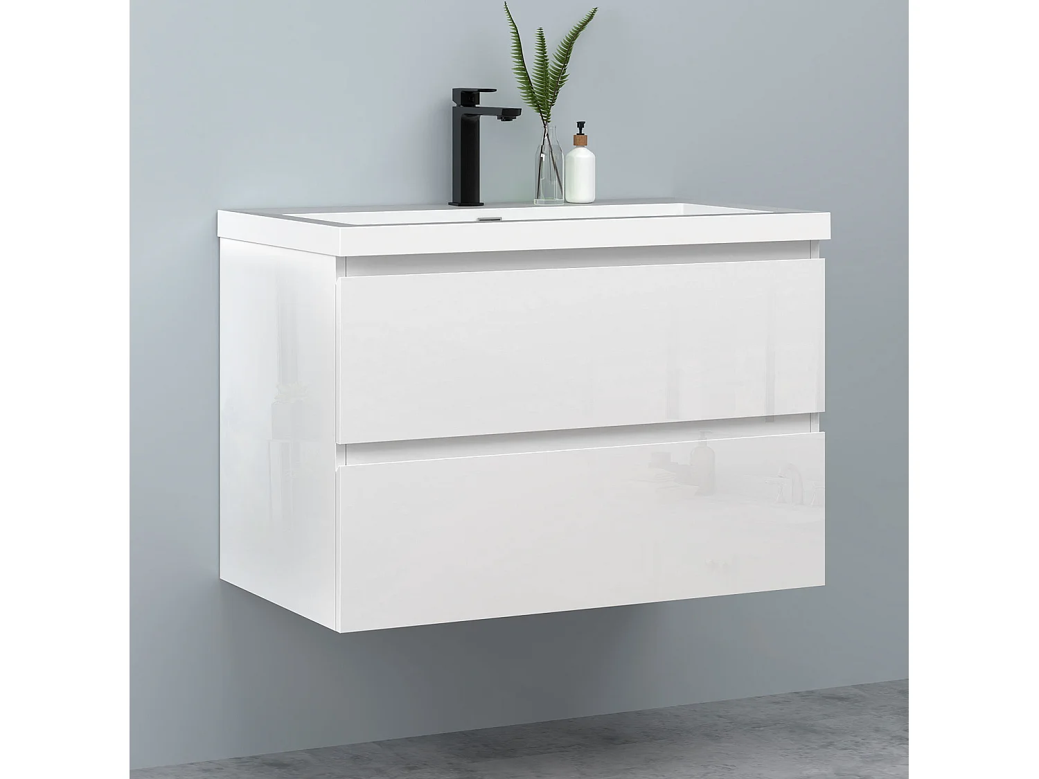 AICA Waschbeckenunterschrank hängend 80cm Rechteckiges Mineralguss-Waschbecken mit Unterschrank - Hochglanz Weiß - CINIC