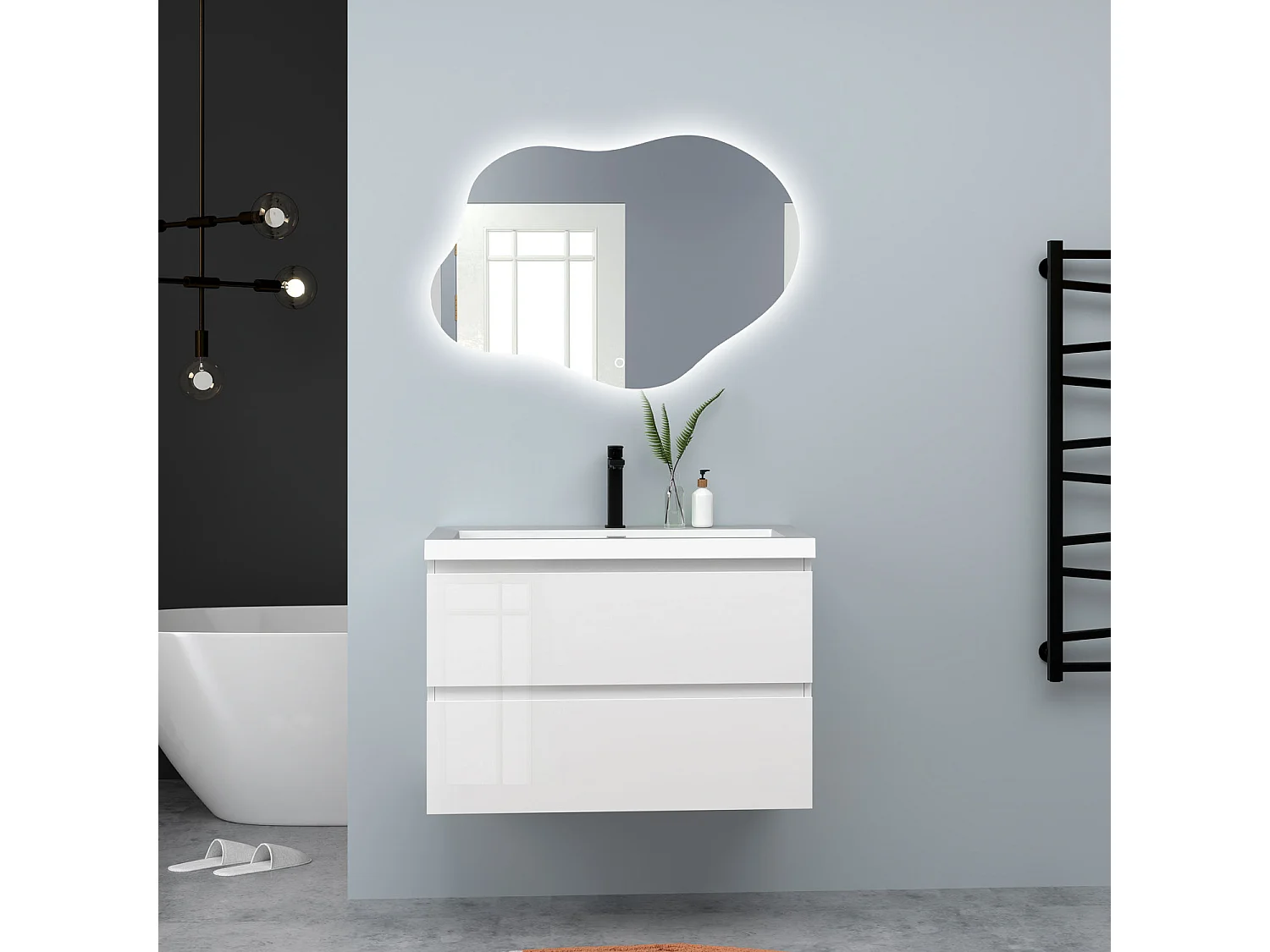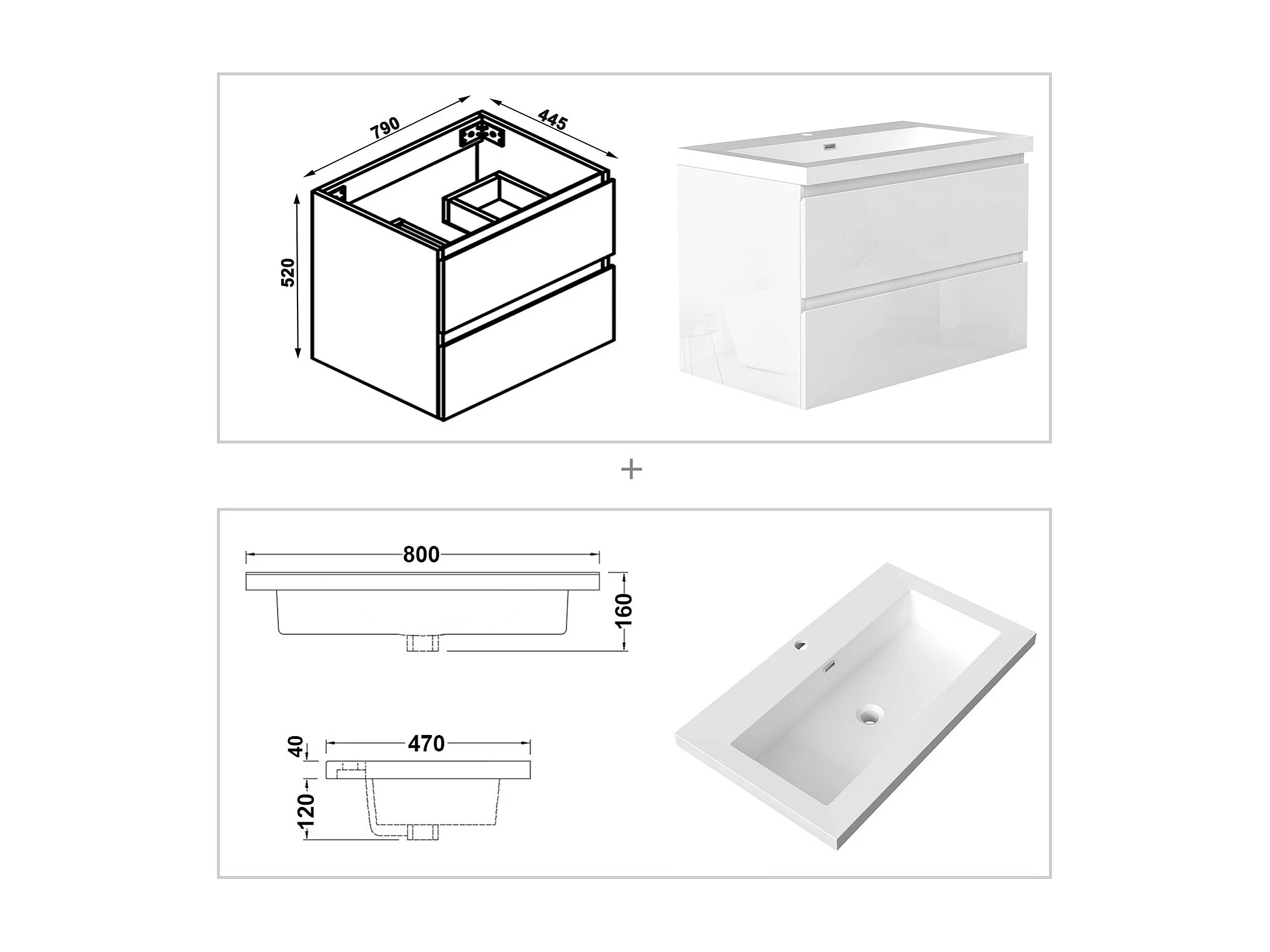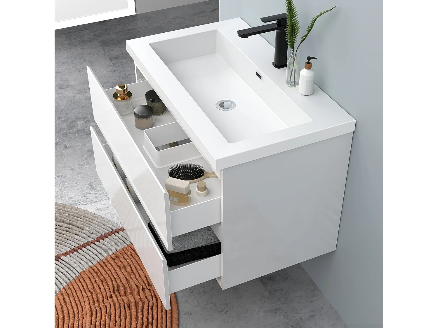 AICA Waschbeckenunterschrank hängend 80cm Rechteckiges Mineralguss-Waschbecken mit Unterschrank - Hochglanz Weiß - CINIC