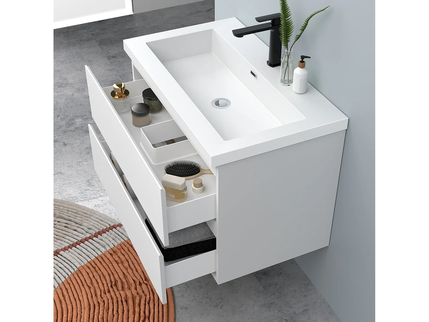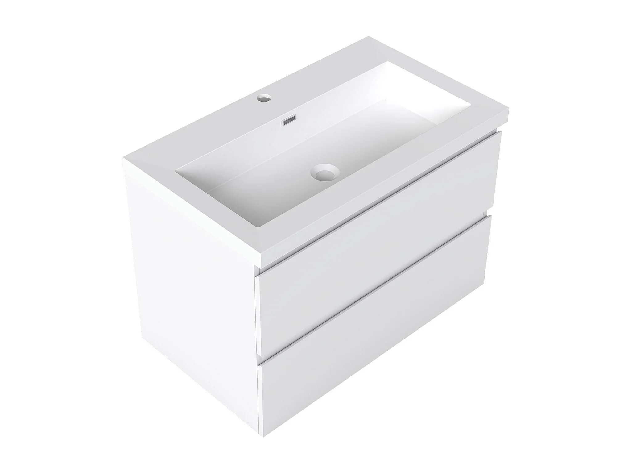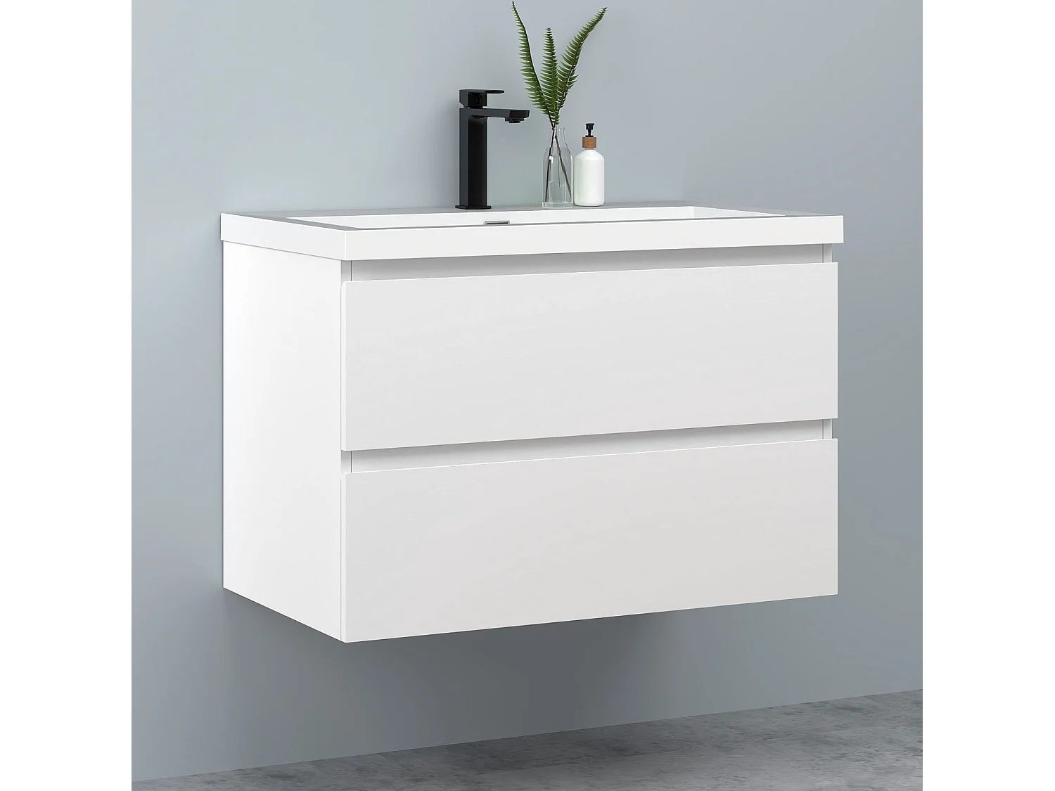 AICA Waschbeckenunterschrank hängend 80cm Rechteckiges Mineralguss-Waschbecken mit Unterschrank - Weiß Matt - CINIC