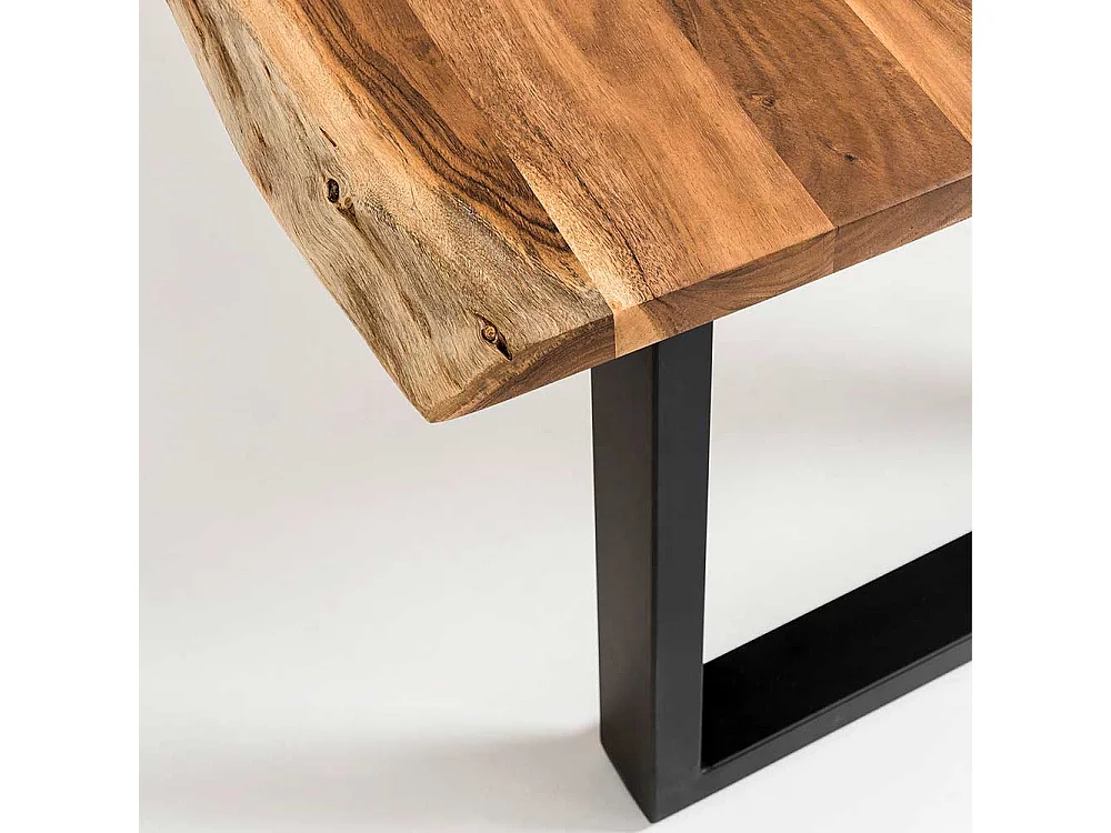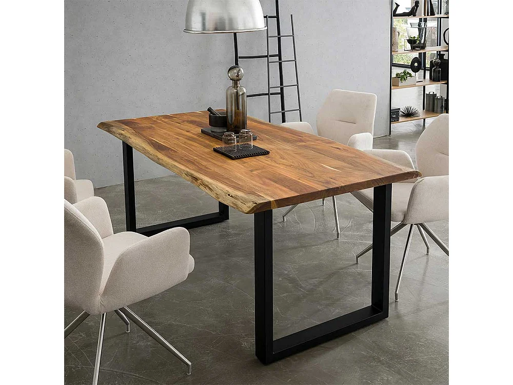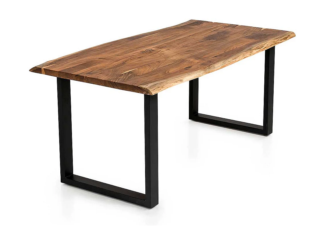 Akazienholz Esstisch mit natürlicher Baumkante Bügelgestell
