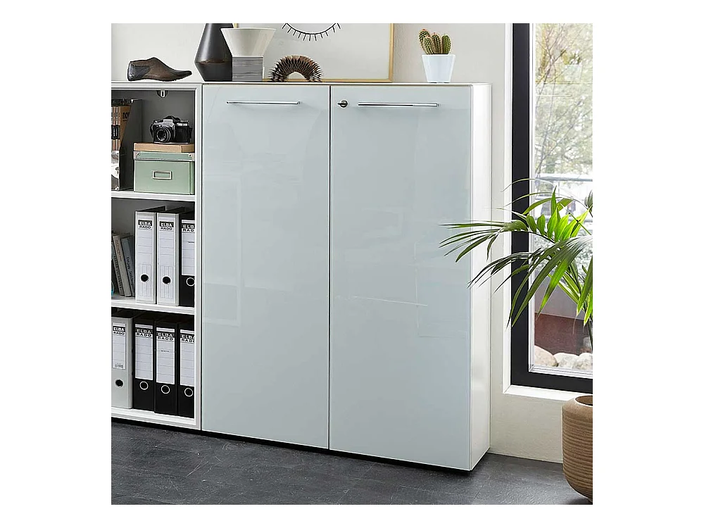 Aktenordnerschrank in Weiß mit Glas beschichtet abschließbar