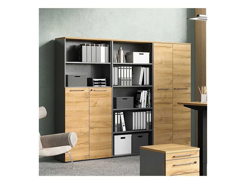 Aktenordnerschrank in Wildeichefarben und Dunkelgrau abschließbar