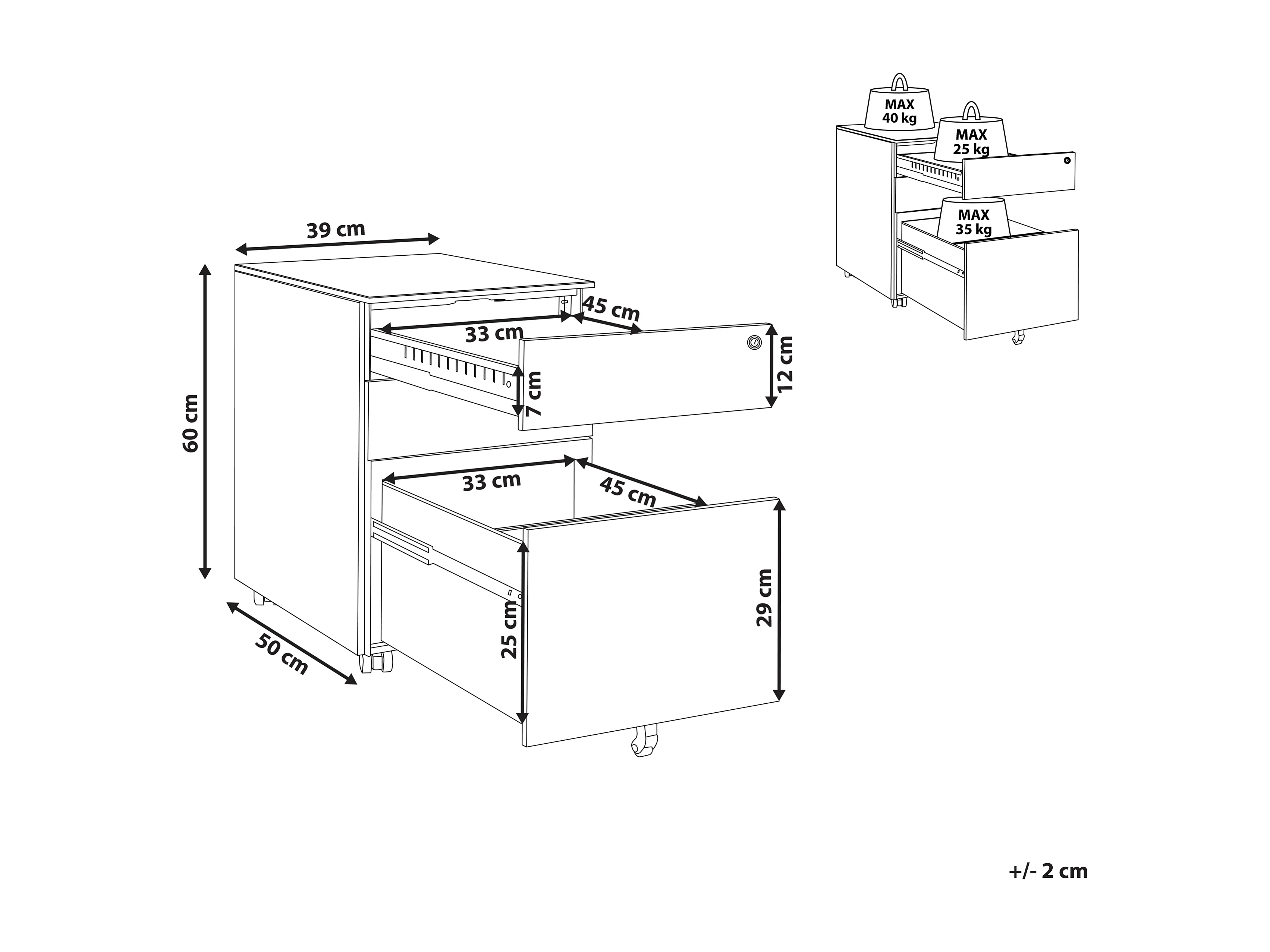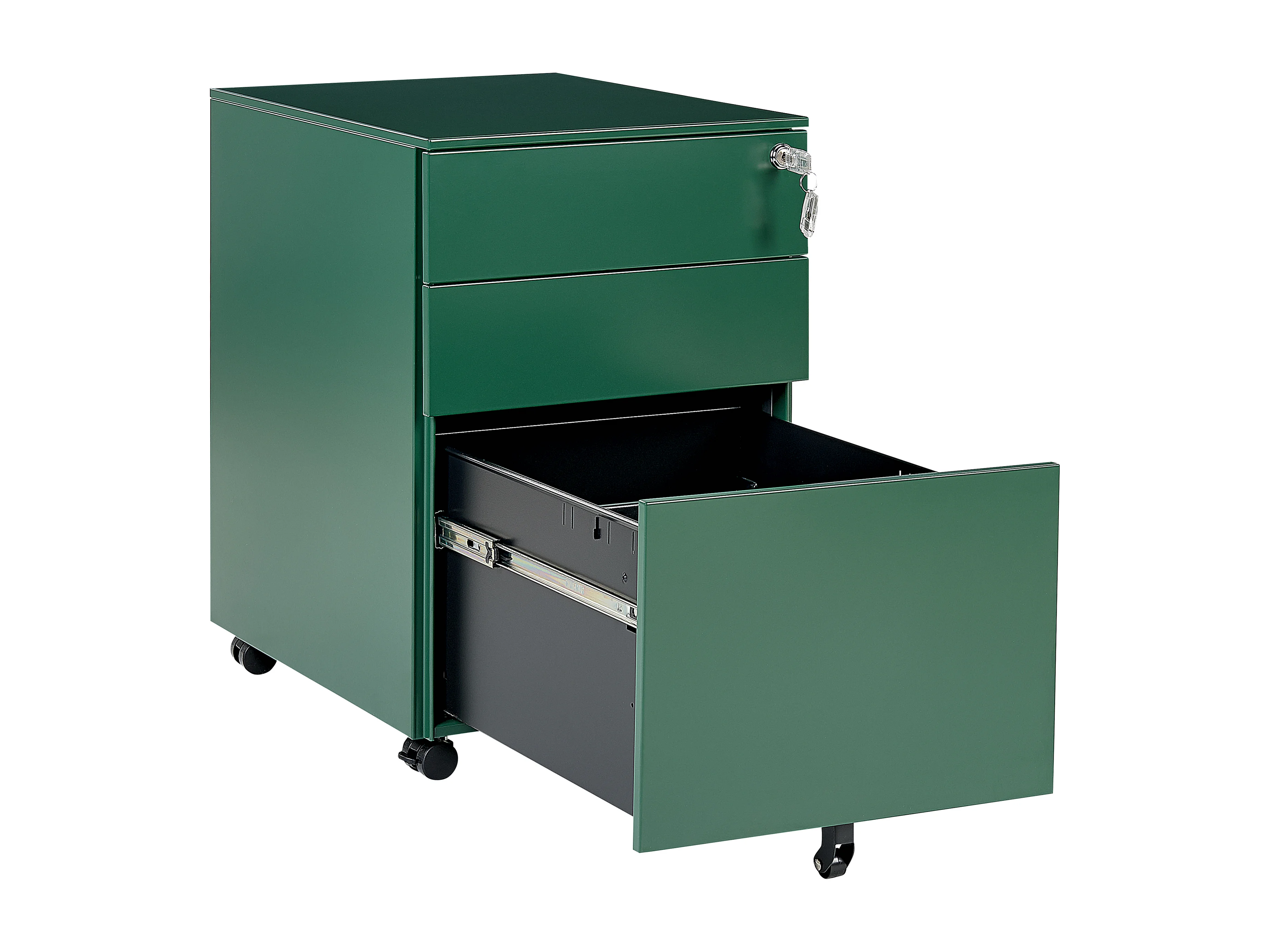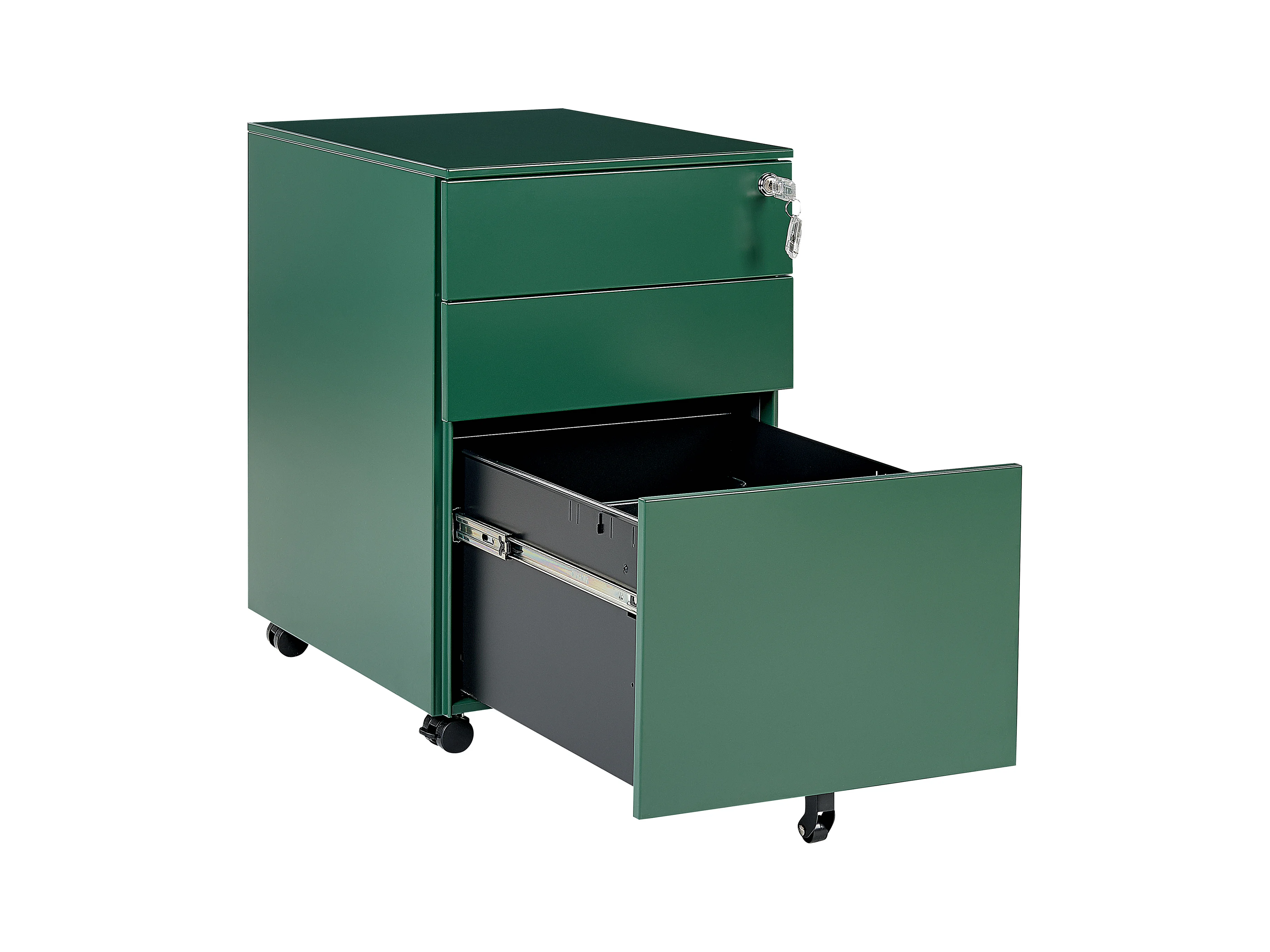 Aktenschrank aus Stahl grün auf Rollen mit 3 Schubladen Cami