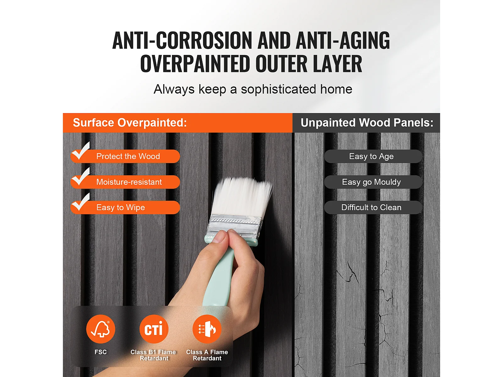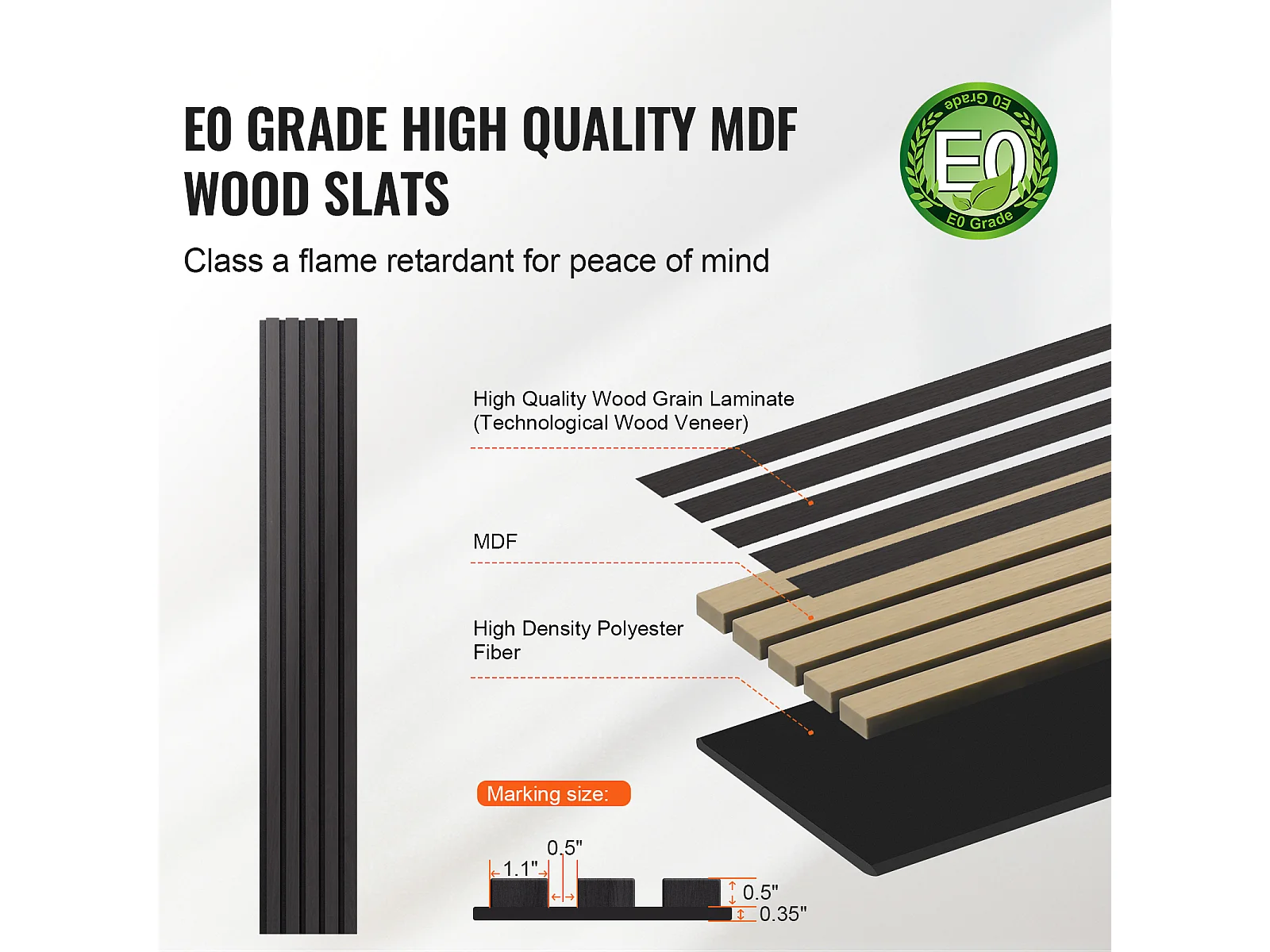 Akustik-Wandpaneele SucceBuy, 20 x 240 cm, für Wanddekoration, mit Hohem NRC-Wert von 0,85 und SGS-Akustikzertifizierung, aus Schwarzer Eiche
