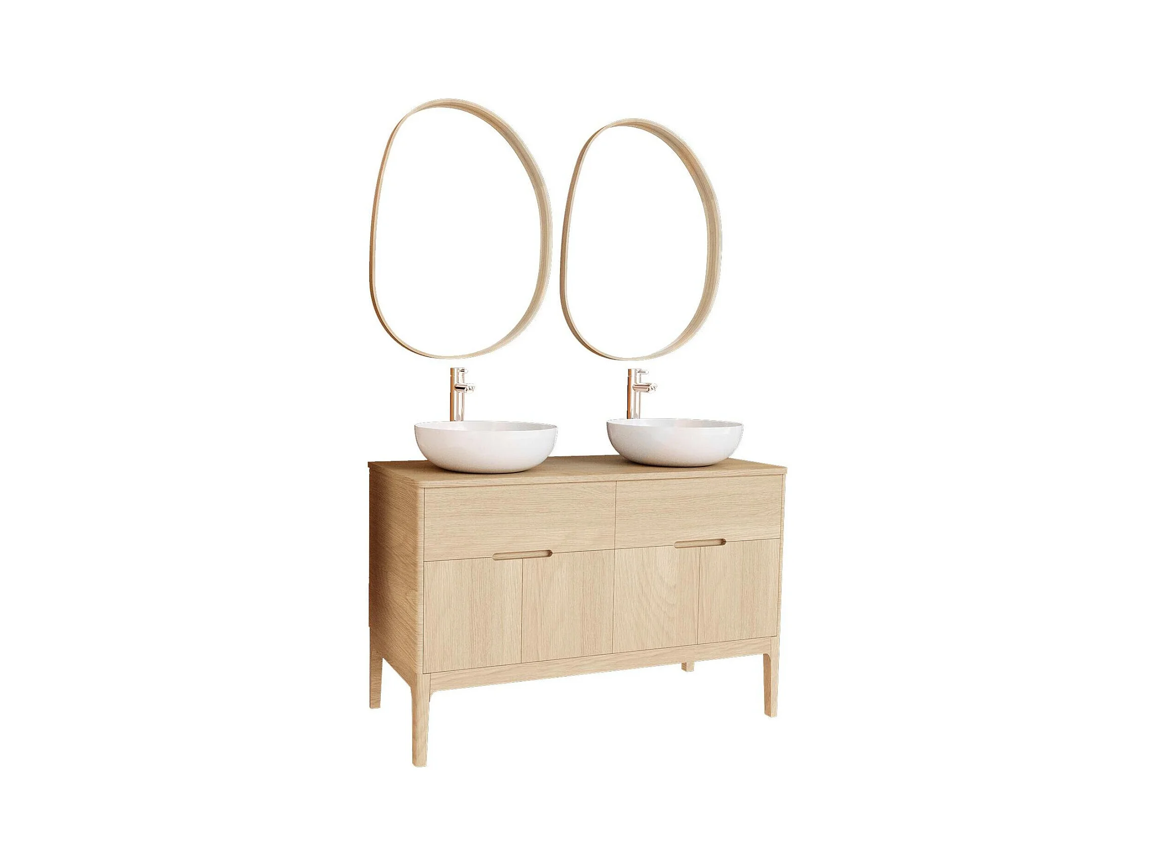 ALASKA Doppelwaschtisch + Waschbecken + Wasserhahn + Spiegel