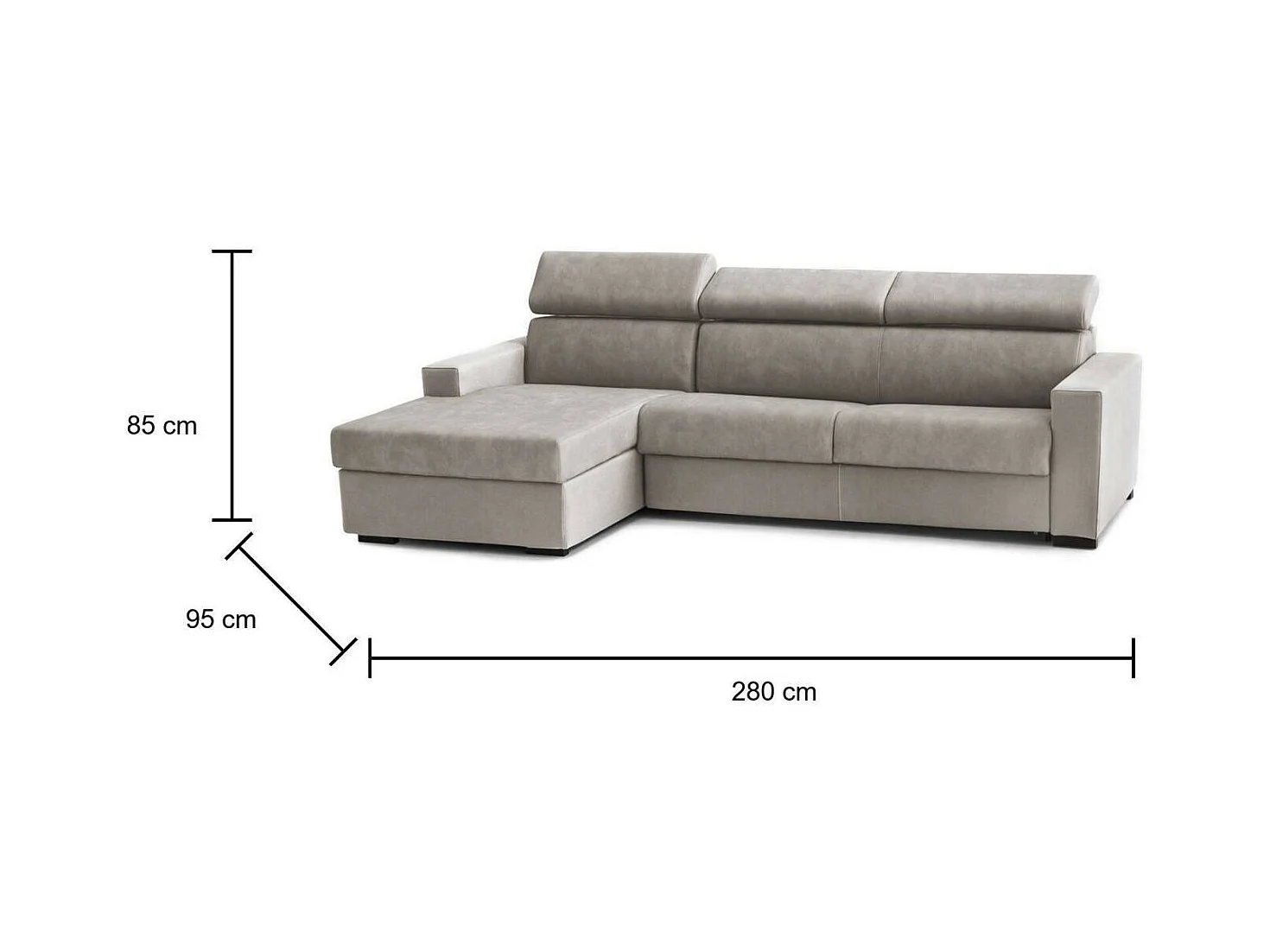 Alda Schlafsofa, Ecksofa, 100 % Made in Italy, Sofa mit drehbarer Öffnung, mit linker Stauraumhalbinsel, mit Standardarmlehnen, 280 x 95 x 85 cm, Taupe