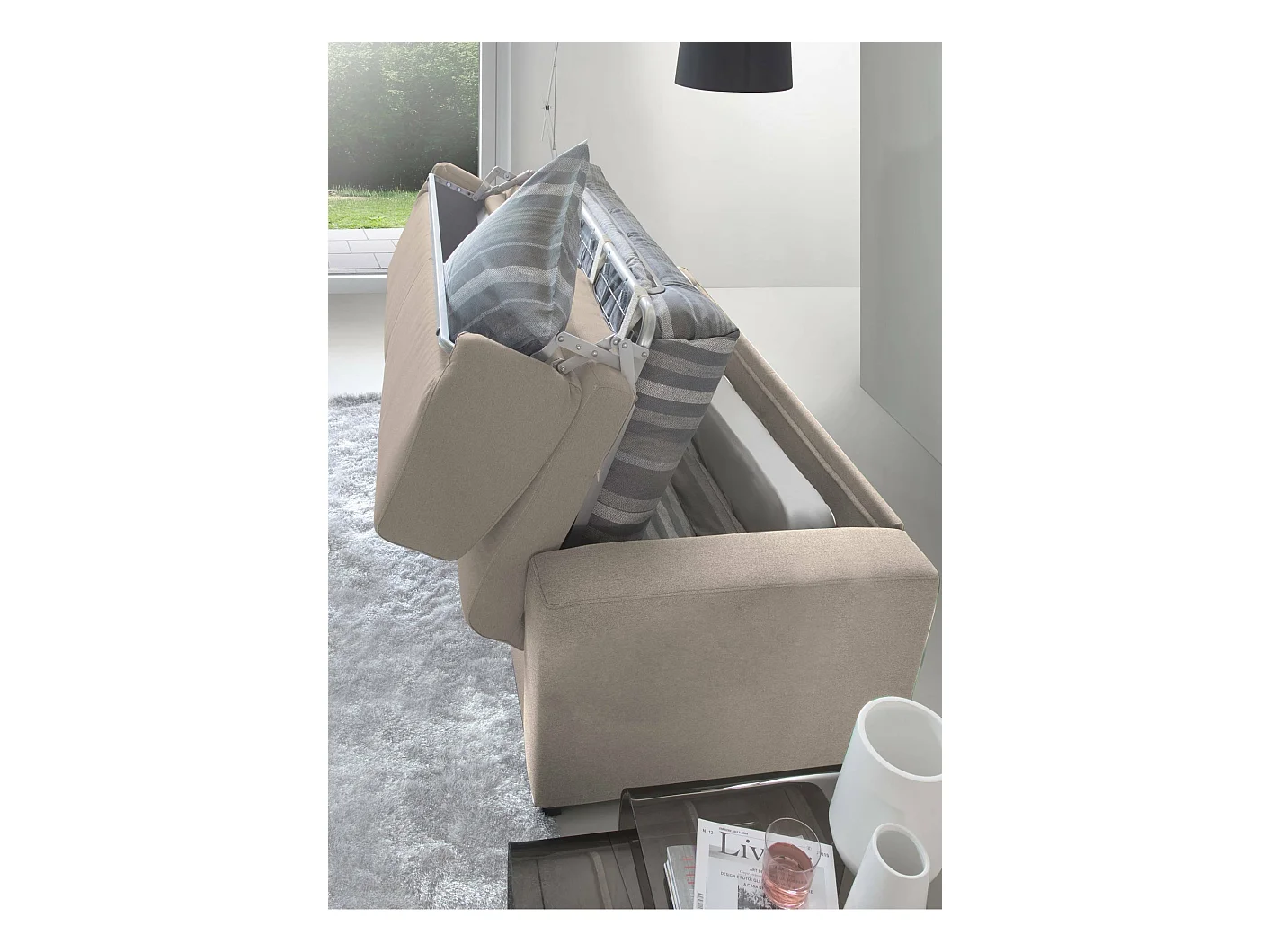 Sofá cama 2 plazas Alexis, Sofá de salón con apertura giratoria de tejido acolchado, Reposabrazos estándar, 100% Made in Italy, Cm 200x95h90, Taupe