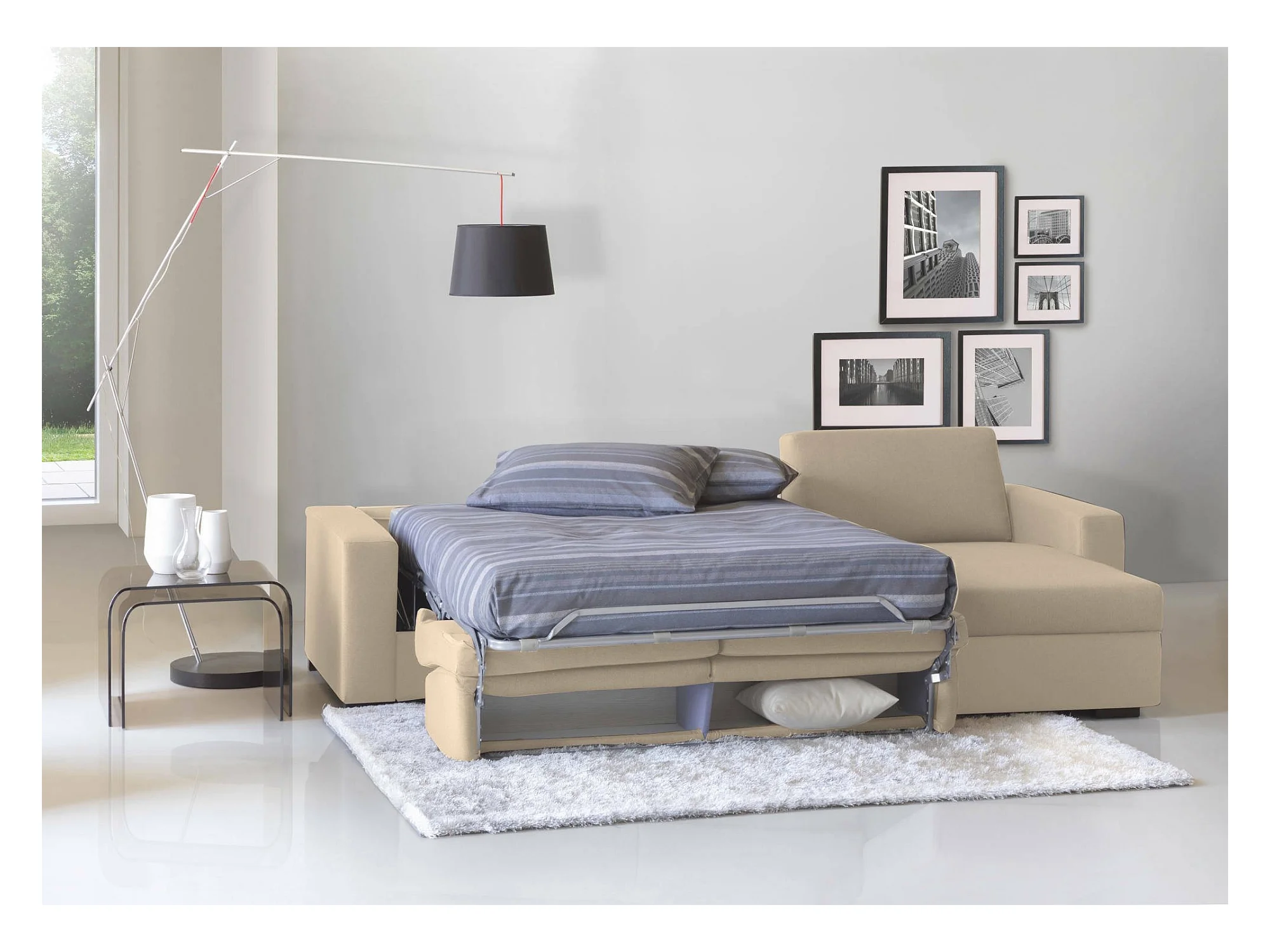 Alicya Schlafsofa, Ecksofa, 100 % Made in Italy, Sofa mit drehbarer Öffnung, mit umkehrbarer Aufbewahrungshalbinsel, mit Standardarmlehnen, 280 x 95 x 90 cm, Beige