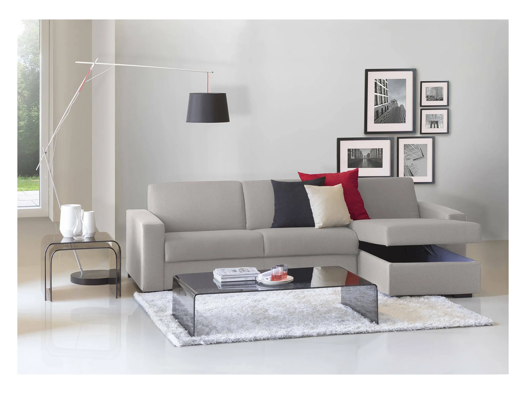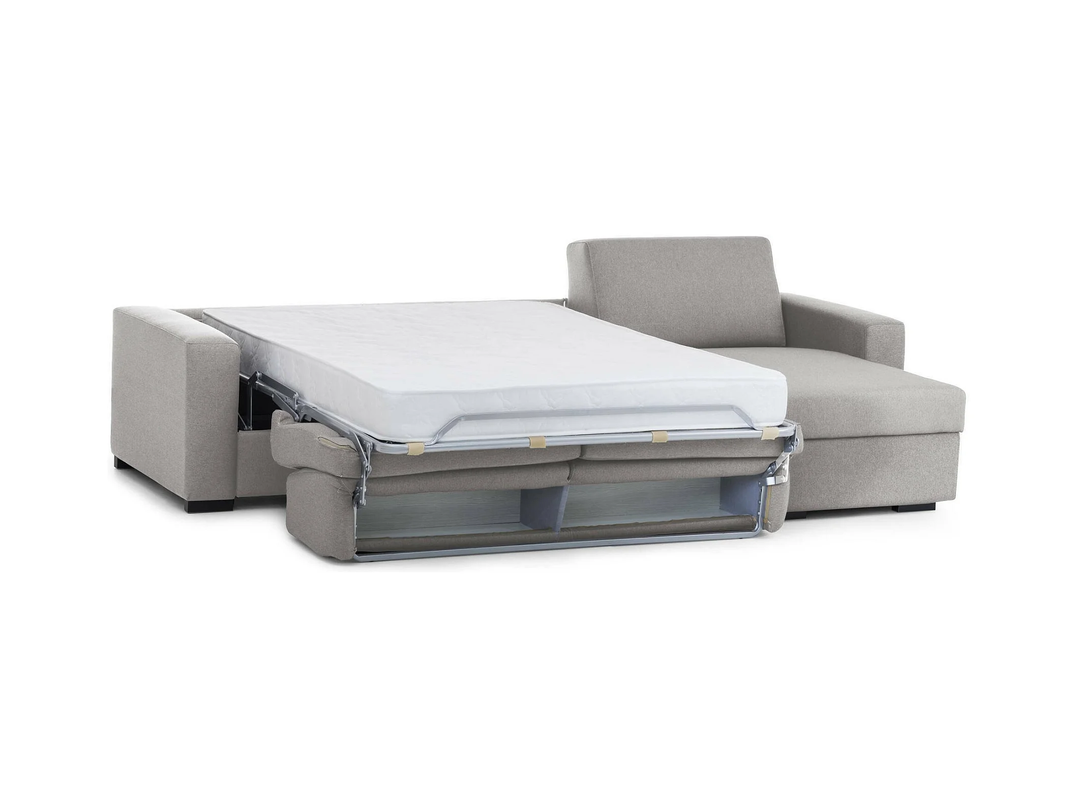 Alicya Schlafsofa, Ecksofa, 100 % Made in Italy, Sofa mit drehbarer Öffnung, mit umkehrbarer Aufbewahrungshalbinsel, mit Standardarmlehnen, 280 x 95 x 90 cm, Grau