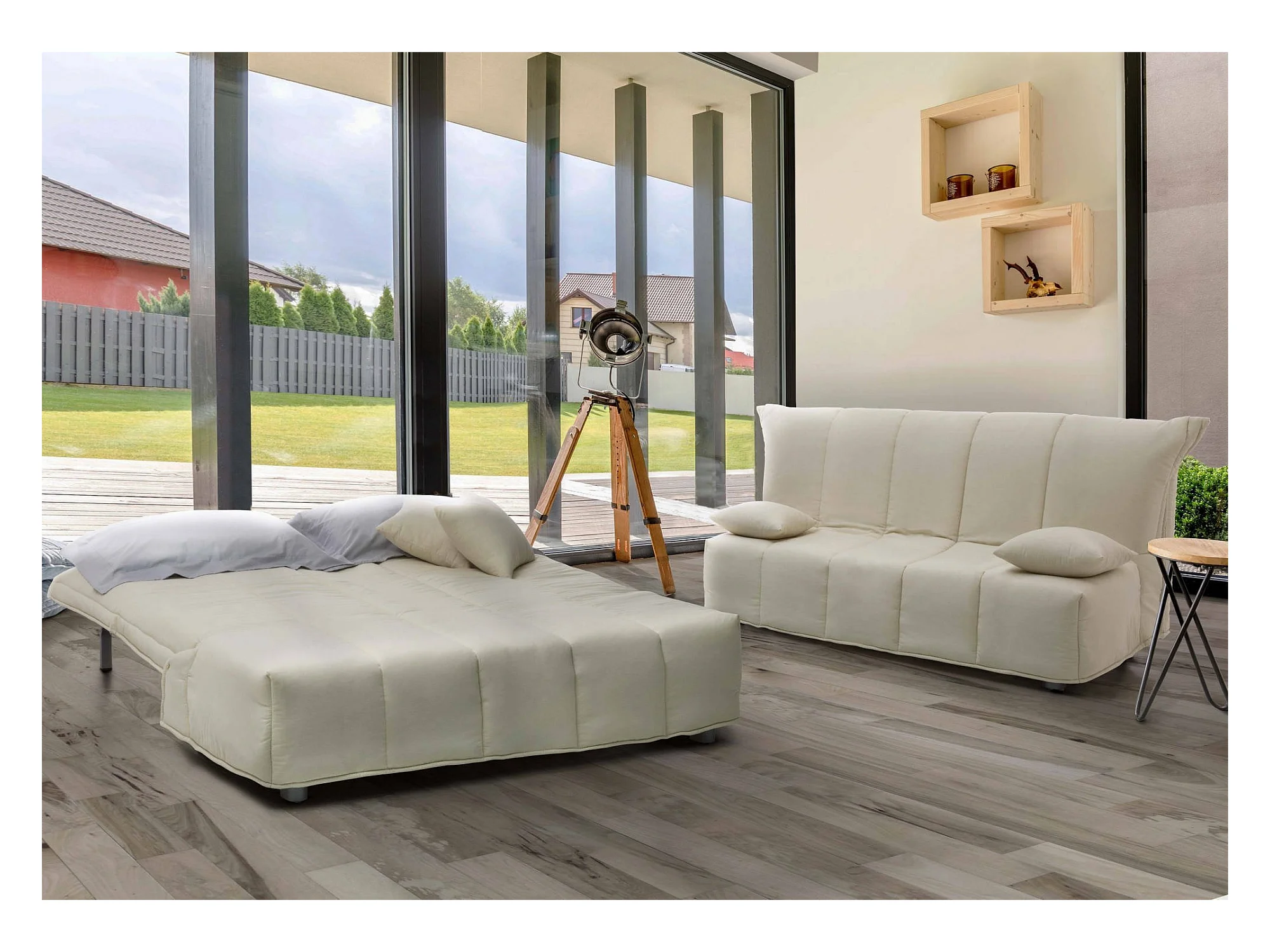 Allegra Schlafsofa, 3-Sitzer-Sofa, 100 % Made in Italy, Wohnzimmersofa mit Trolley-Öffnung, aus gepolstertem Stoff, inklusive Kissen, 165 x 90 x 85 cm, Beige