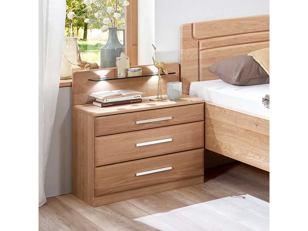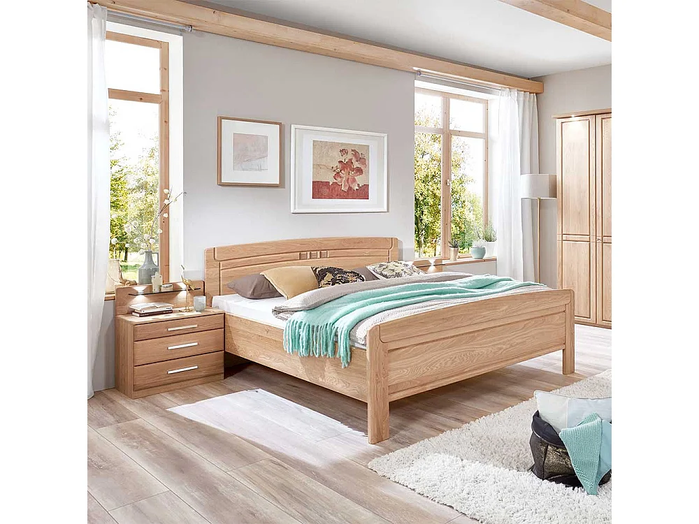 Altersgerechtes Bett aus Eiche teilmassiv LED Beleuchtung (dreiteilig)