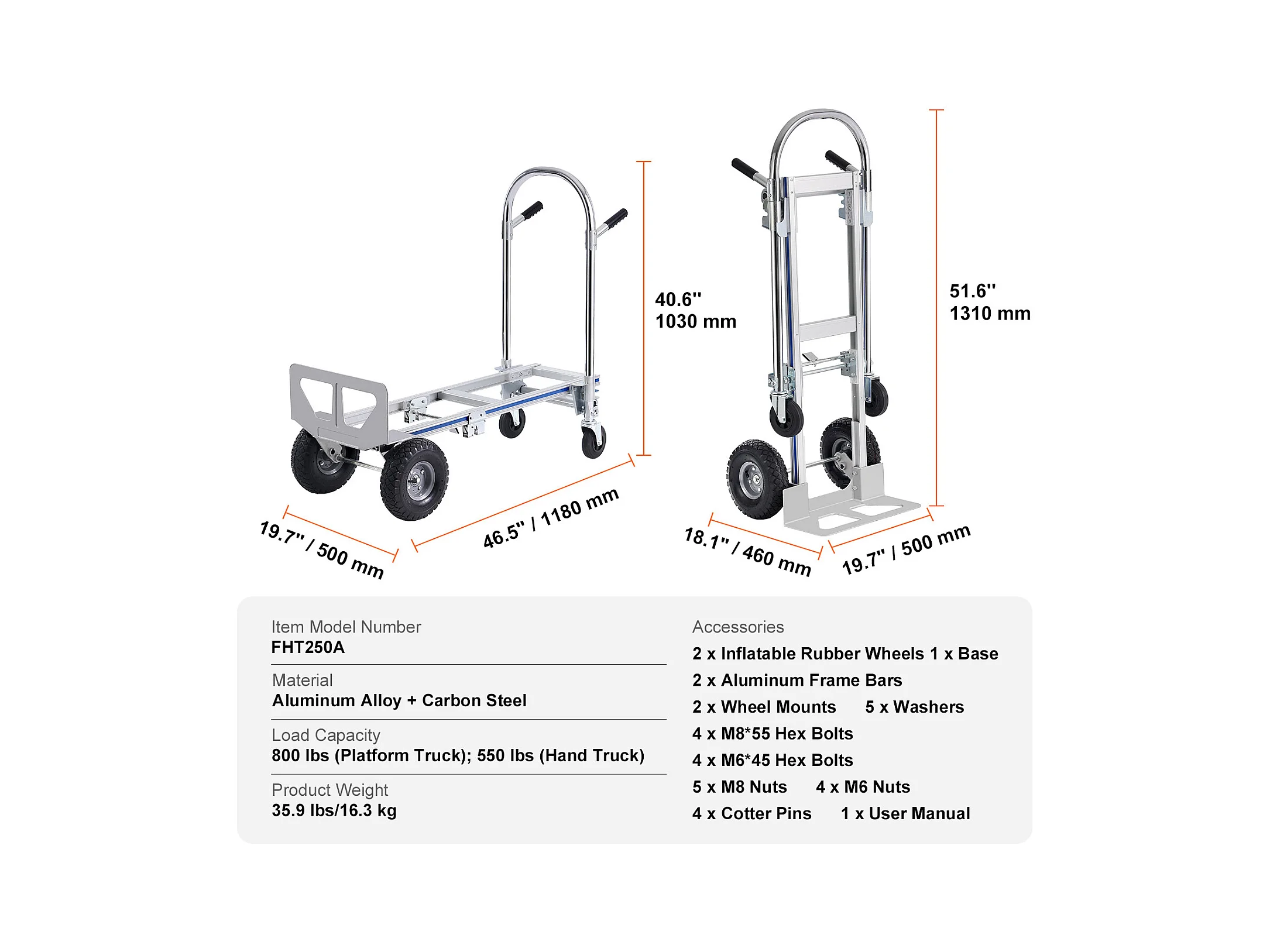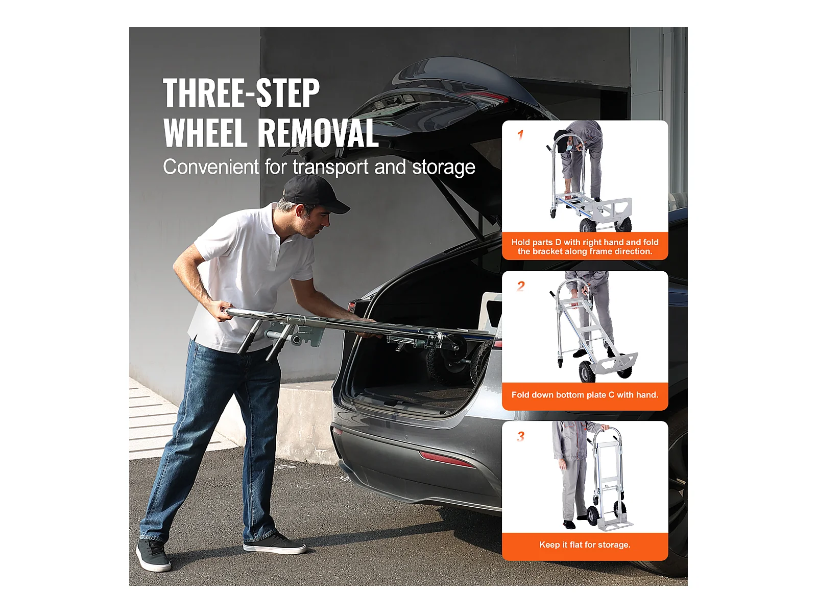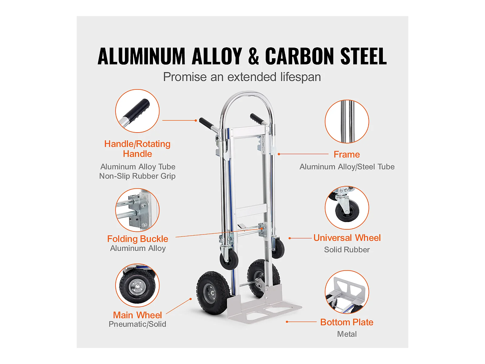 Aluminium-Sackkarre SucceBuy, 2-in-1-Klapp-Transportkarre, 800 lbs Schwerlastkapazität