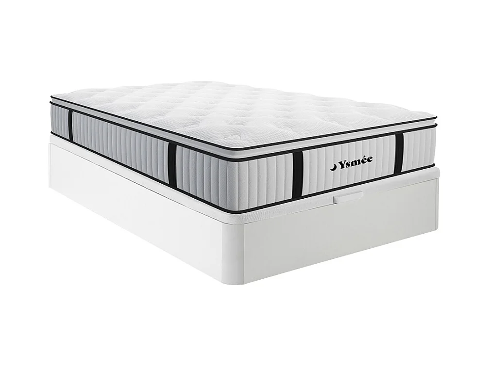 Set aus Bettgestell mit Bettkasten + Taschenfederkernmatratze & Topper - 140 x 200 cm - Stärke 28 cm - Weiß - AMERICAN DREAM von YSMÉE