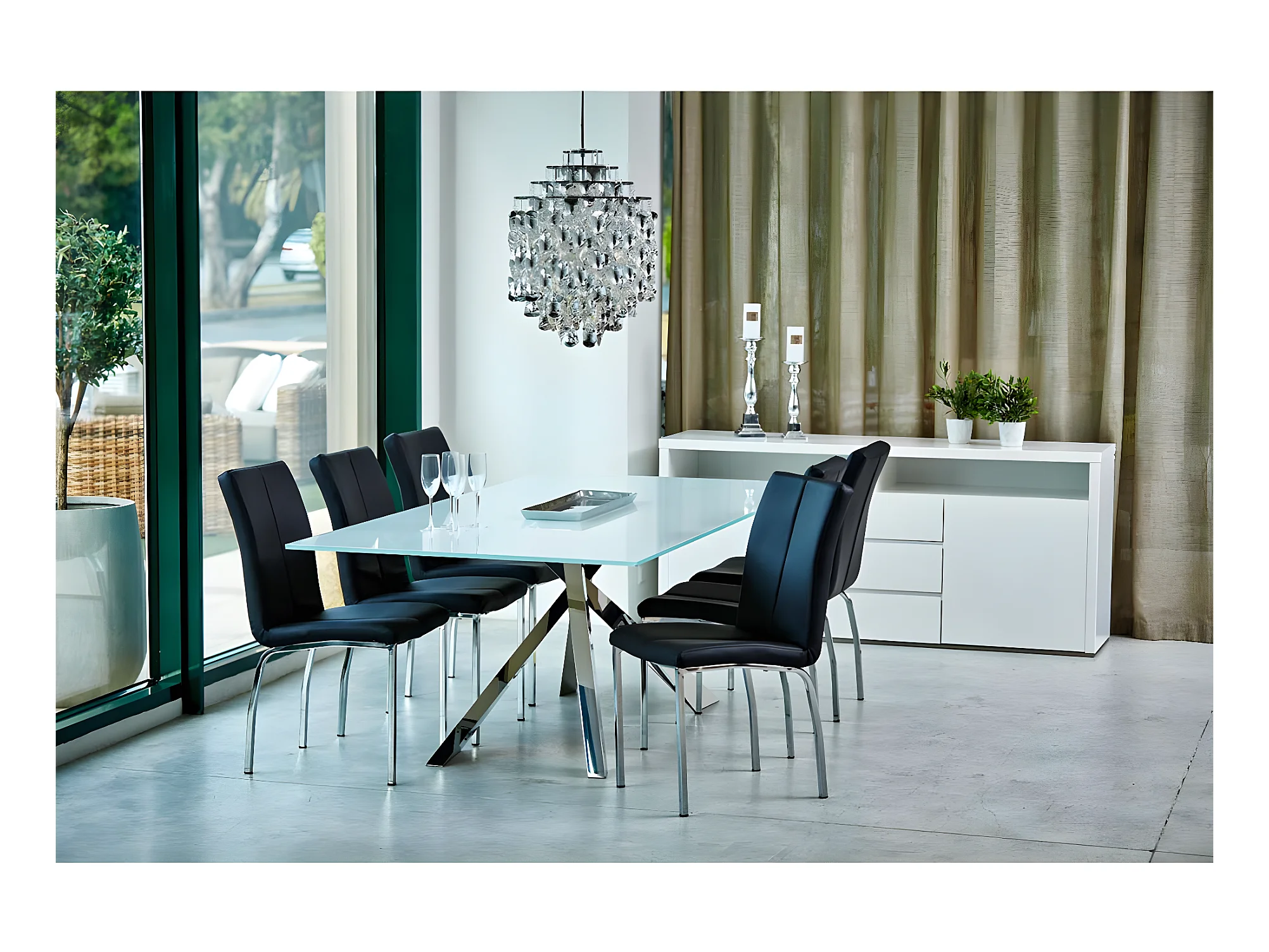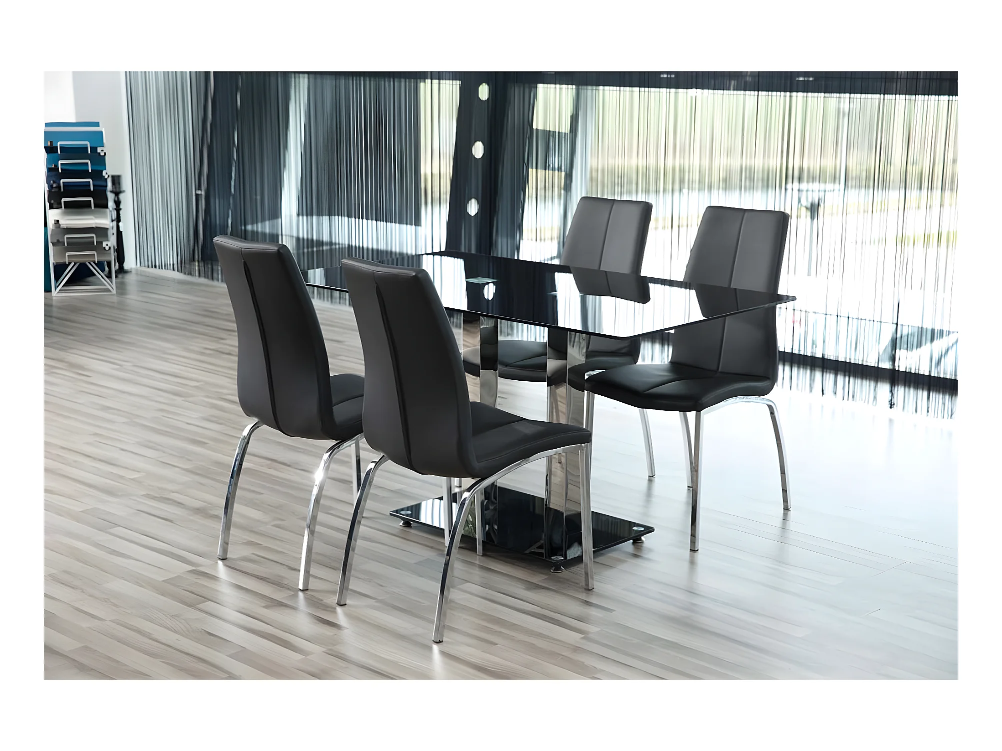 Amin Esszimmerstuhl in schwarzen Kunstleder und Chrom Gestell.