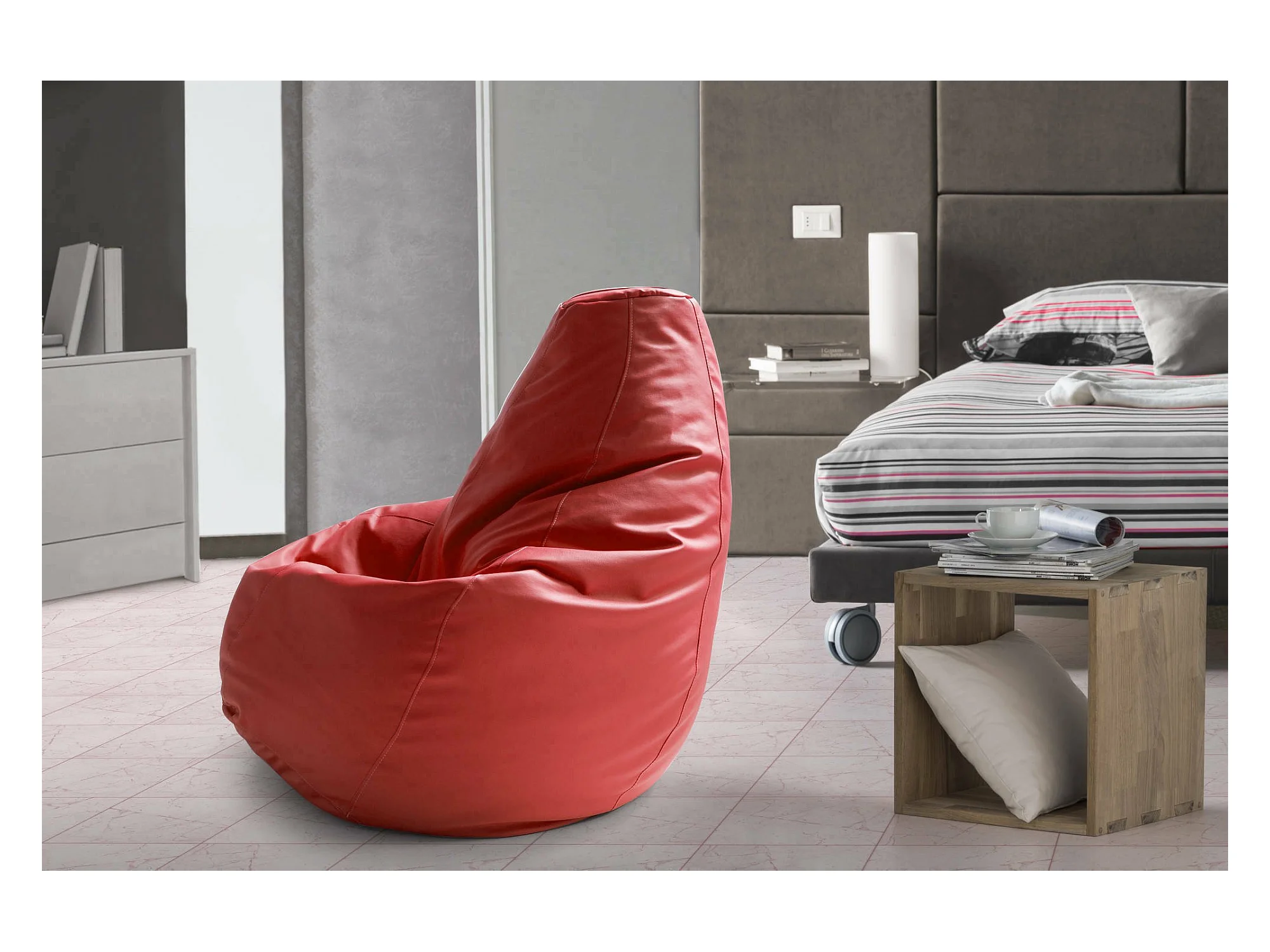 Annachiara-Pouf, Sitzsack-Pouf, Sitzsack aus Kunstleder, 100 % Made in Italy, 70 x 70 x 110 cm, Rot