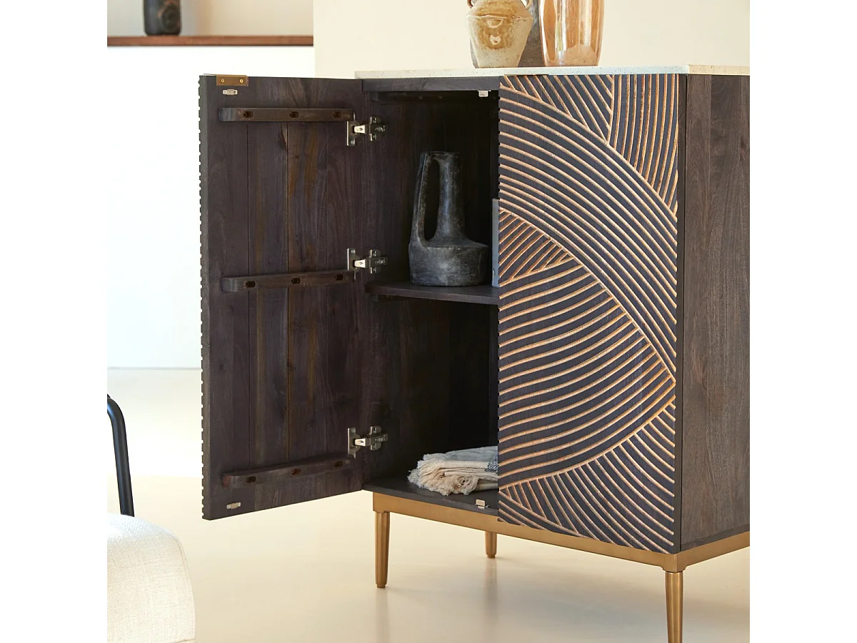 Anrichte aus massivem Mangoholz und Terrazzo Bilal 80 cm