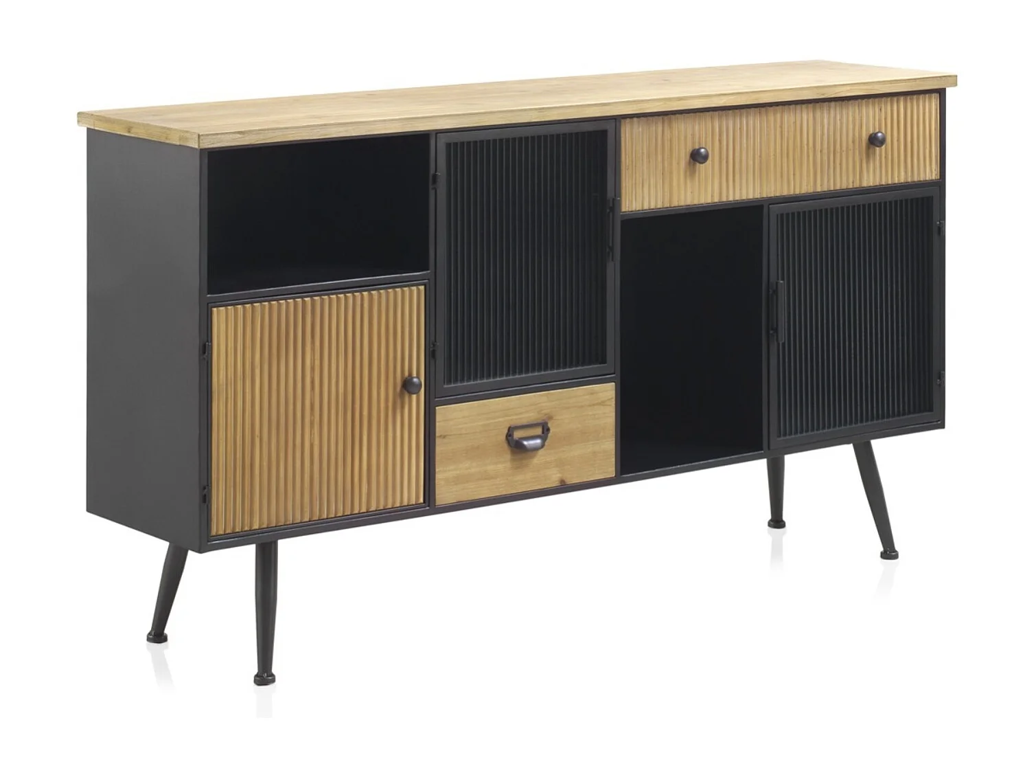 Anrichte aus Metall mit Holzplatte