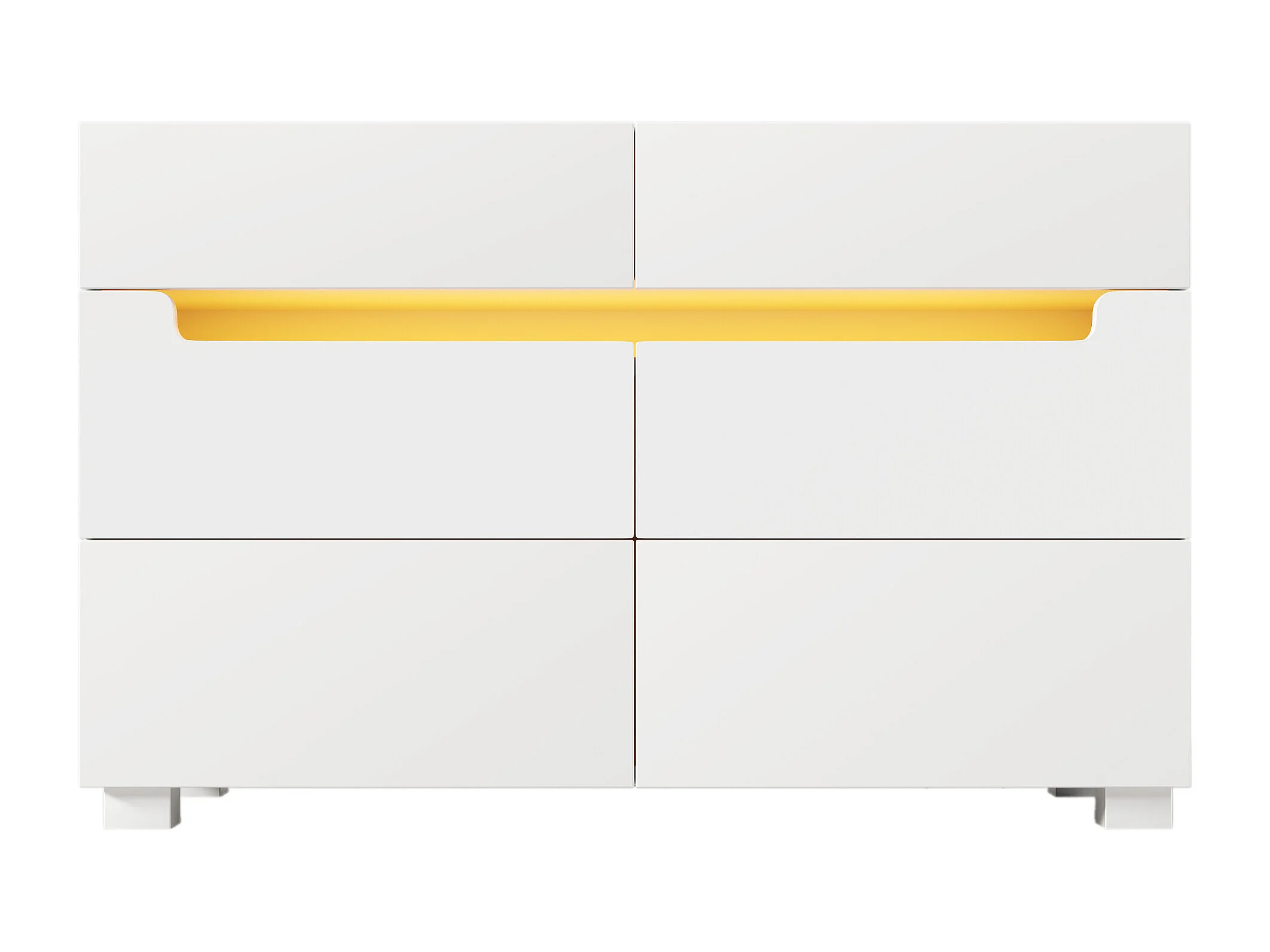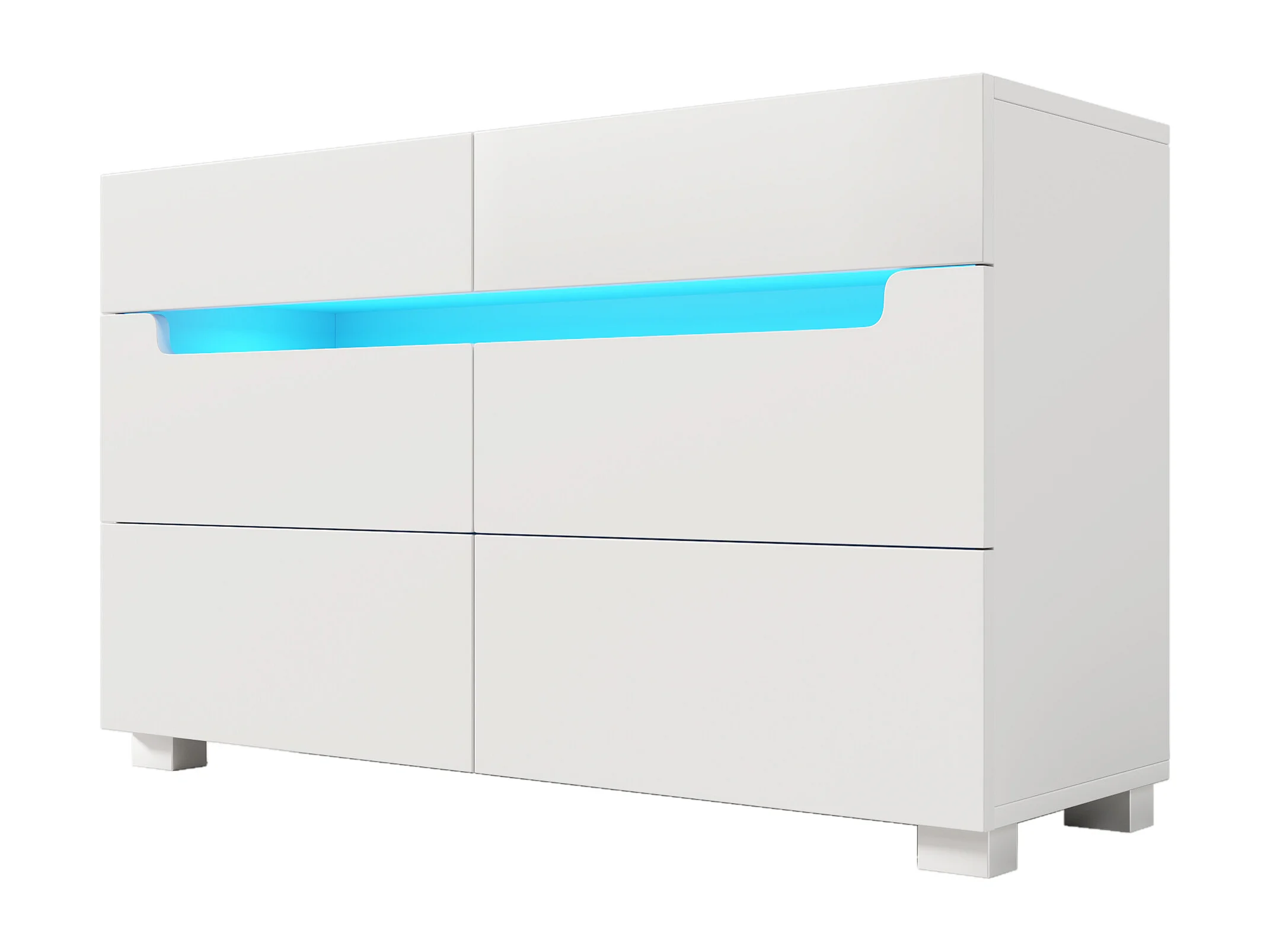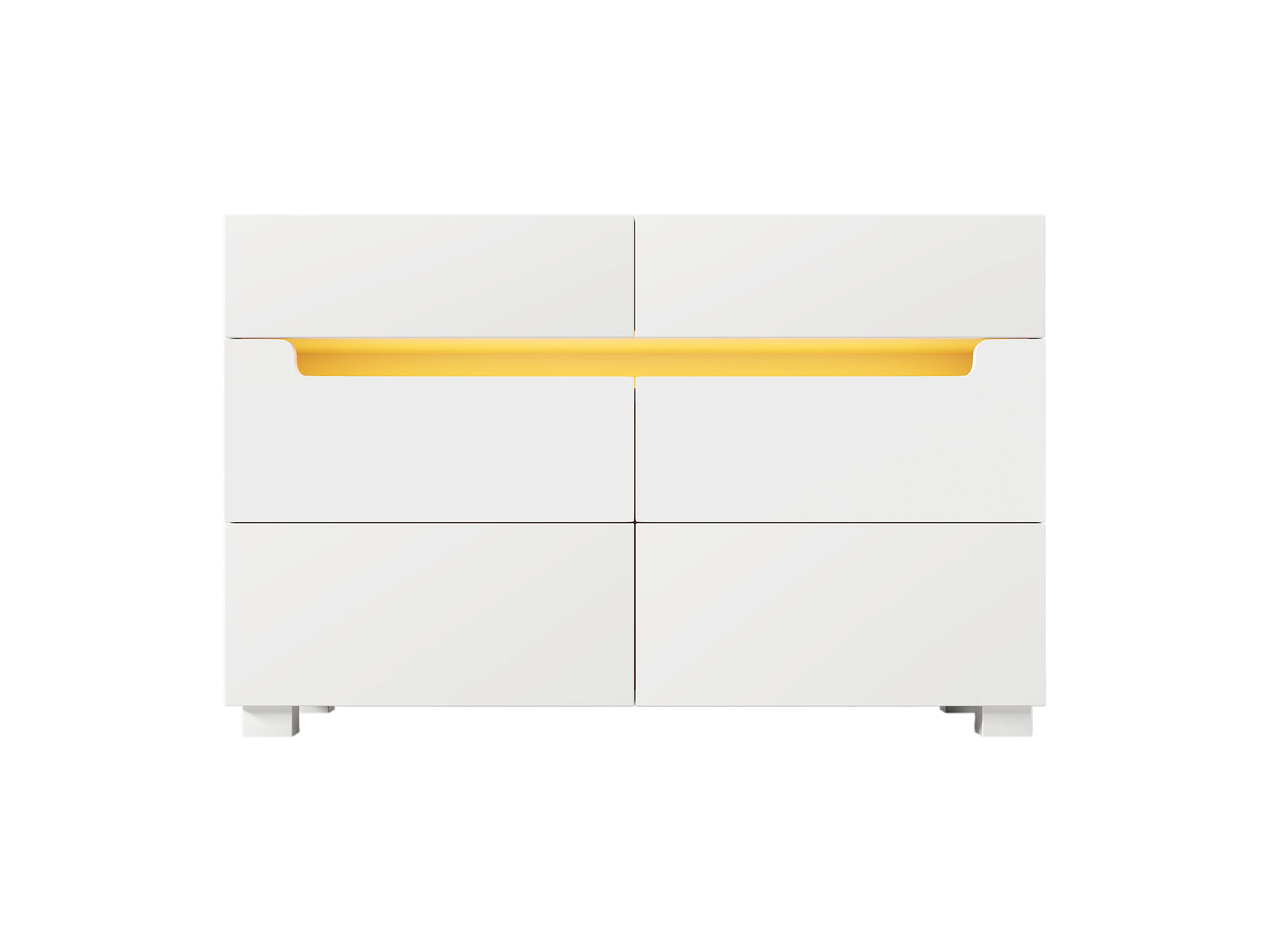 Anrichte, Holzanrichte mit 6 Schubladen, LED-Beleuchtung (per App gesteuert), 71 x 120 x 40 cm, weiß.