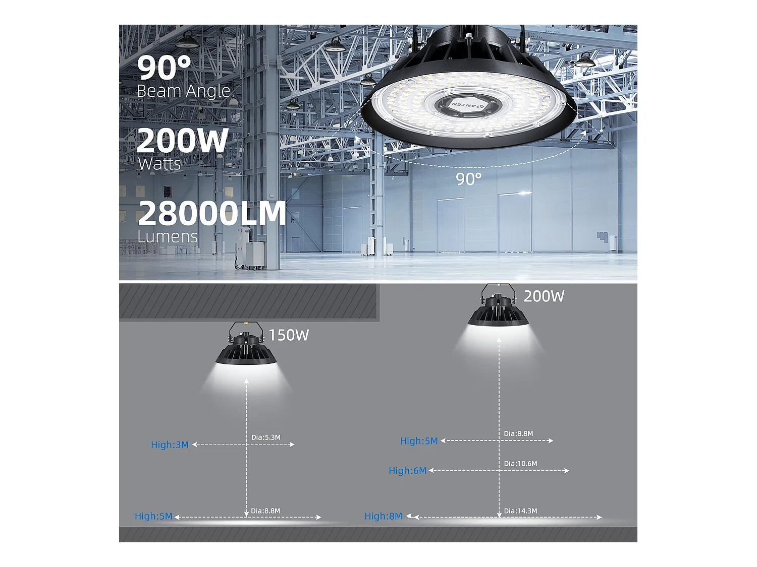 Anten Indoor LED Spot 200 W 28000 lm in Kaltweiß (5000 K), LED-Raumbeleuchtung mit Effizienzhöhe 140 LM/W, IP65