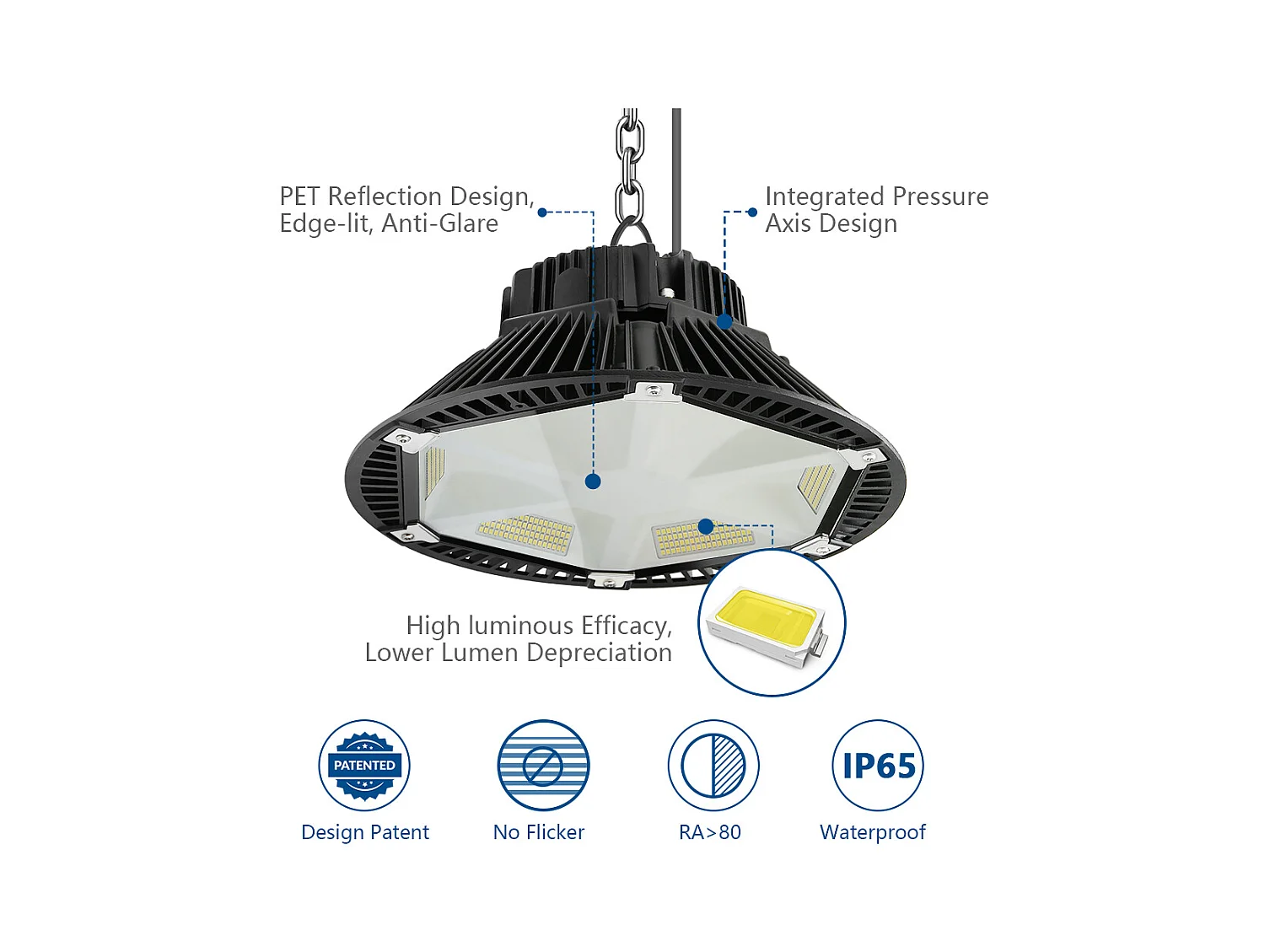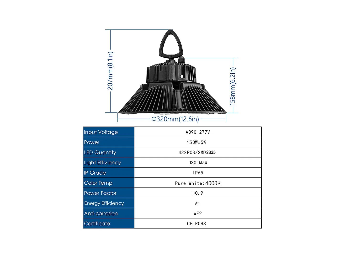 Anten LED Hallenstrahler 150W 19500LM Kaltweiß (4000K) LED Hallenbeleuchtung mit hoher Effizienz 150 LM/W IP65 mit Montagebügel