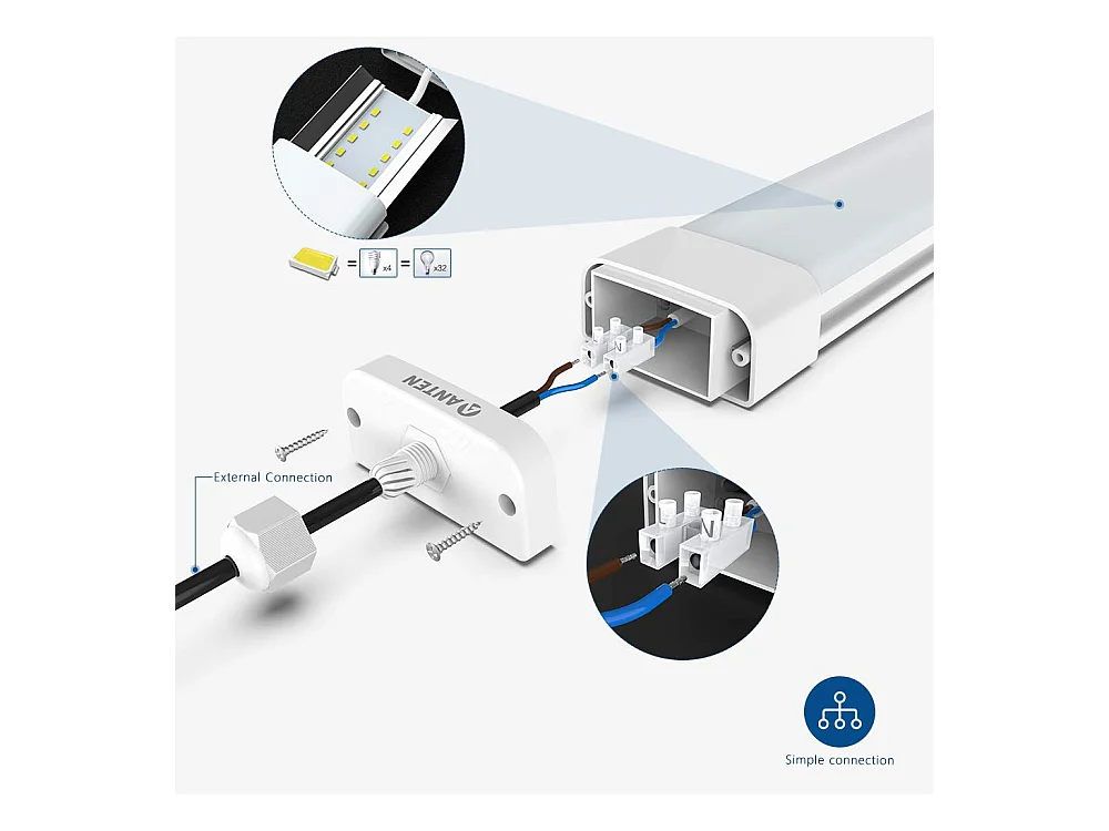 Anten Neon LED 120 cm, 36 W, 3960 lm, Kaltweiß 4000 K, LED-Röhre, LED-Lichtleiste, IP65 wasserdichte Deckenleuchte, Werkstatt/Keller/Büro/Hobby/Scheune