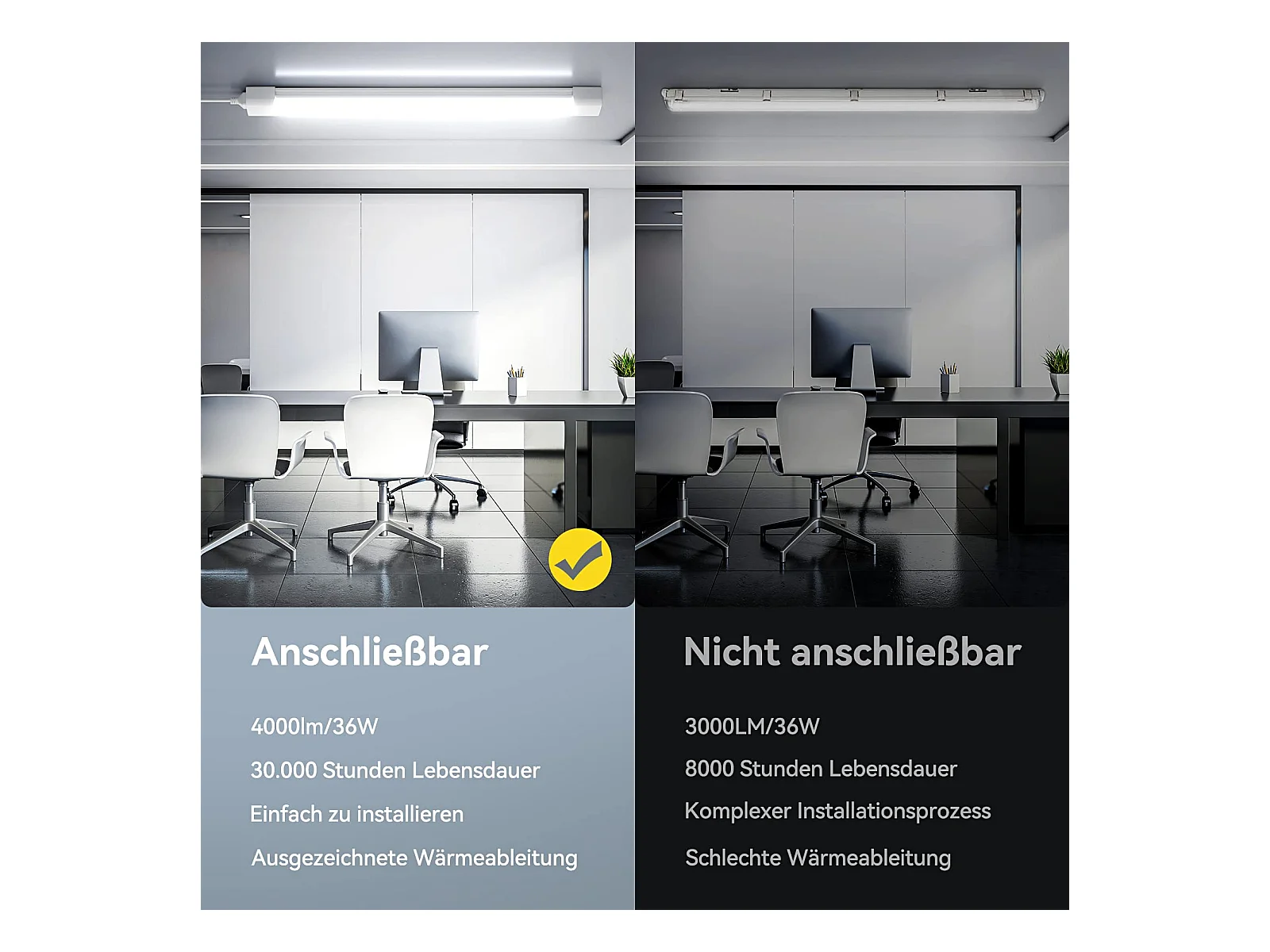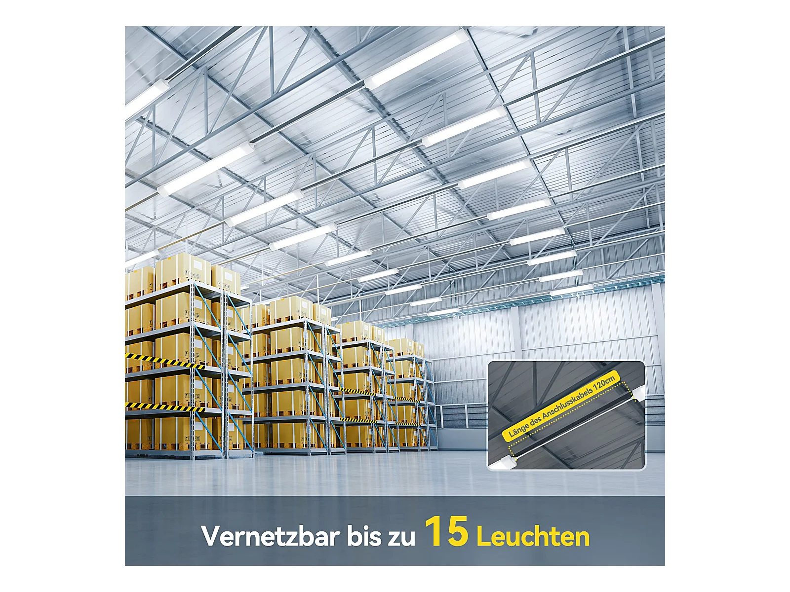 Antenne Neon LED 120CM| 36W 4000lm anschließbare LED-Röhre | Kaltweiß (6000 K) IP65 LED-Lichtleiste für Garage, Werkstatt, Keller, Badezimmer, Büro, Parkplatz
