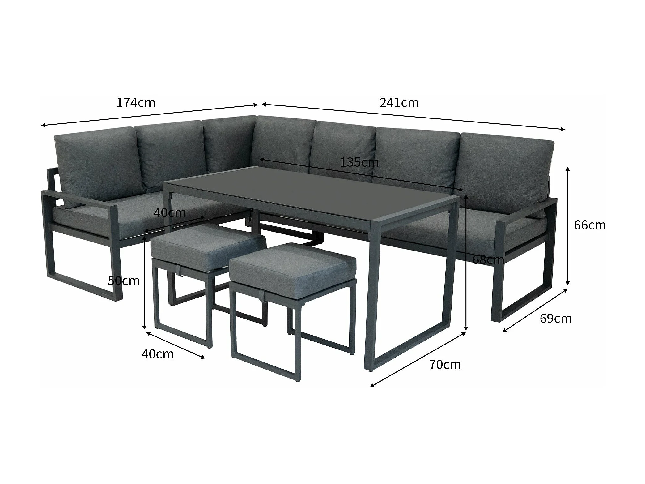 Anthrazitgraues Aluminium-Gartenmöbel-Set 7-Sitzer-Outdoor-Wohnzimmer