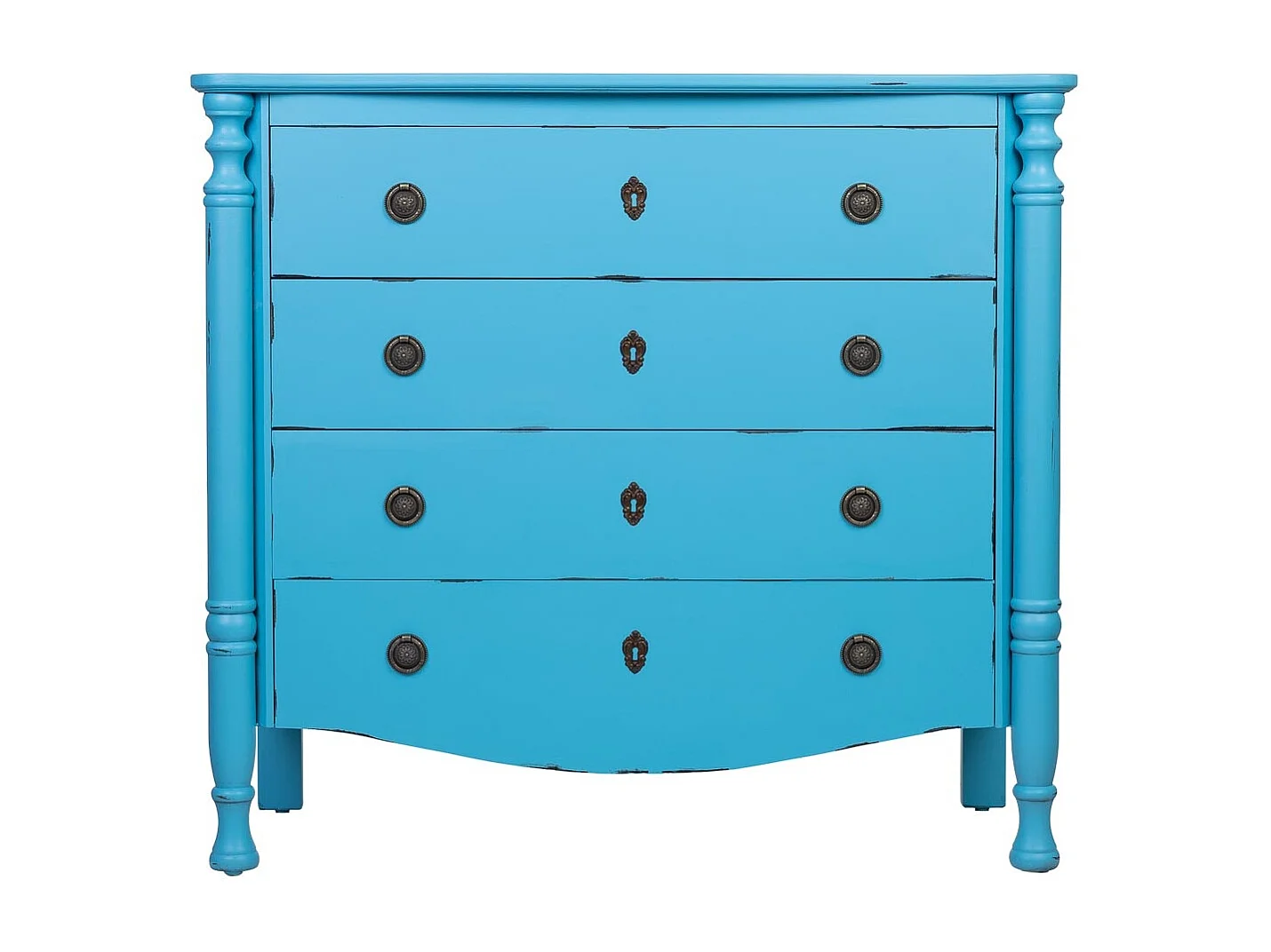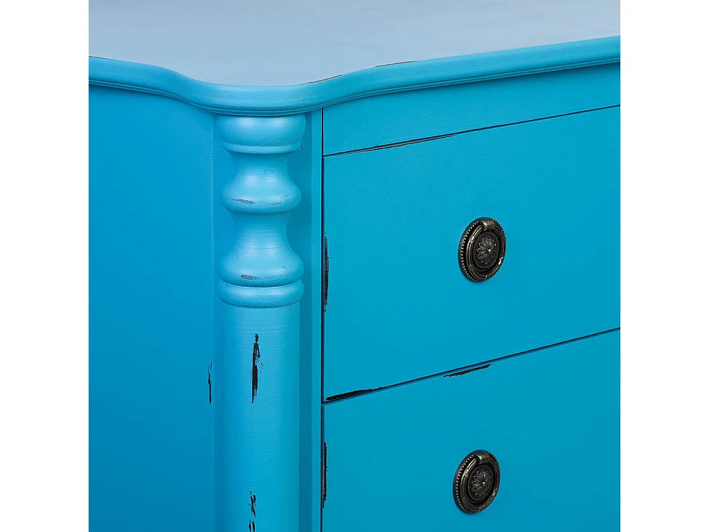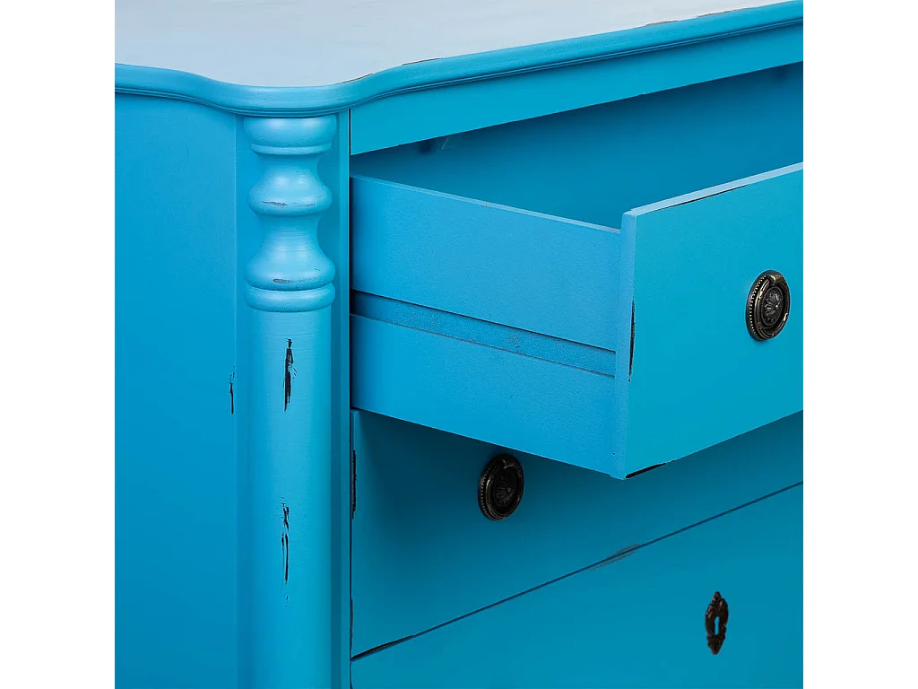 Antikblau lackierte Holzkommode mit 4 Schubladen, 100x40x90H cm
