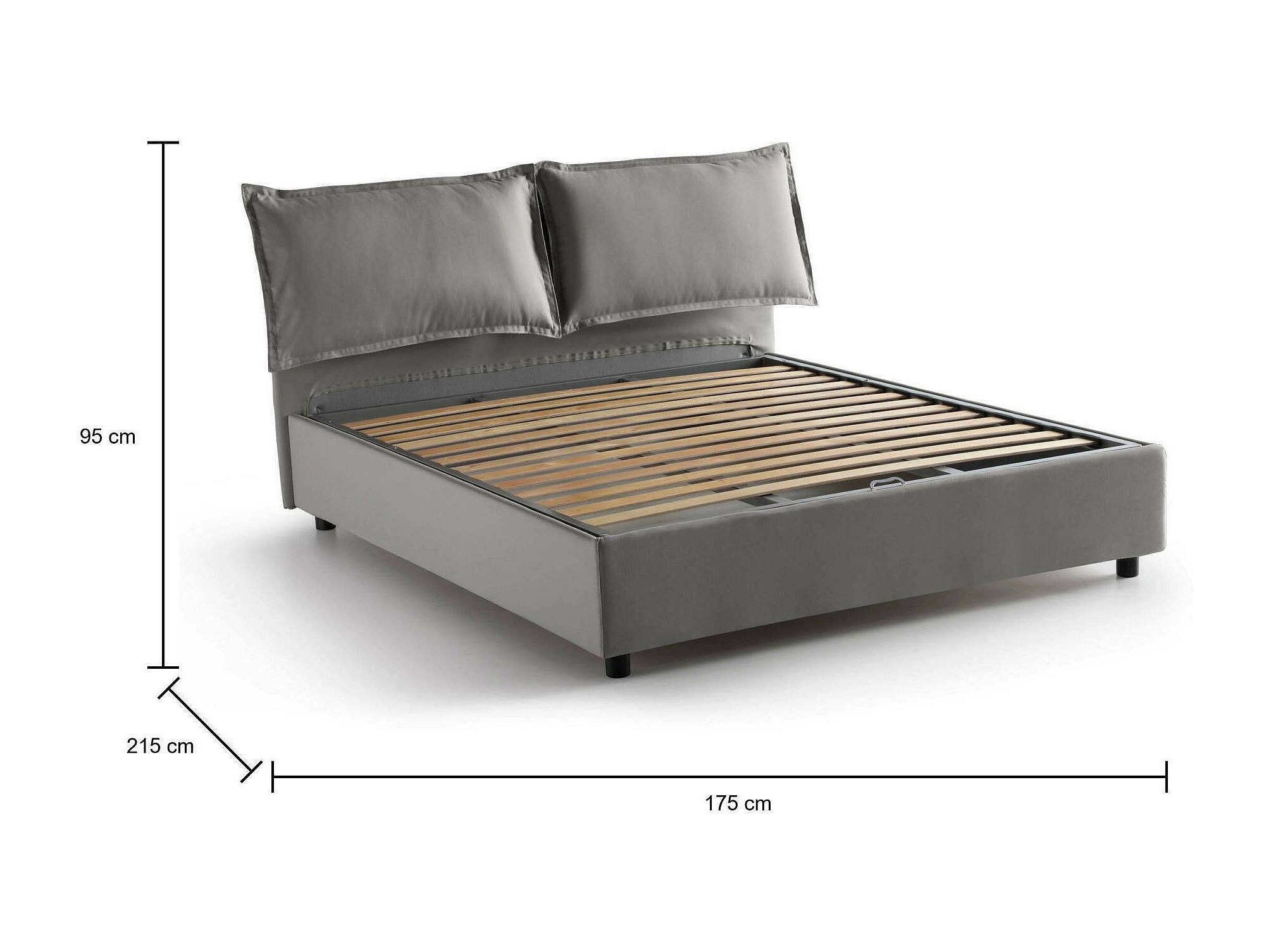 Antonia Doppelbett, Bettkasten mit Stoffbezug, 100 % Made in Italy, Öffnung vorne, geeignet für Matratze 160 x 200 cm, Grau