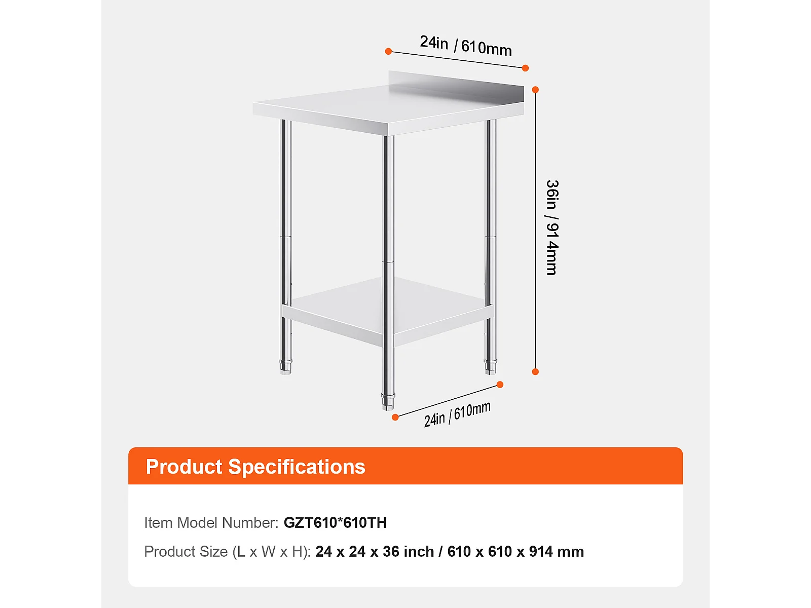 Arbeitstisch SucceBuy Edelstahl-Arbeitstisch (60,96 x 60,96 cm), Gewerblicher Zubereitungstisch