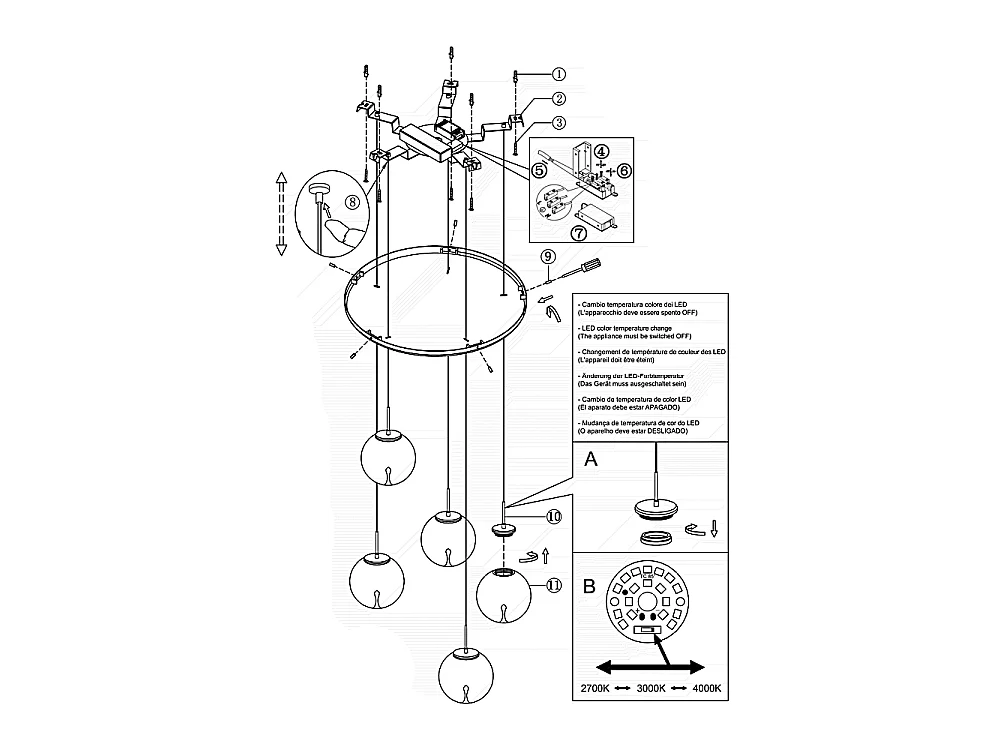 Ariel - Fabas Luce 5-flammige runde Pendelleuchte - 35 W dimmbare LED - Transparente runde Deckenrosette d. 50 cm