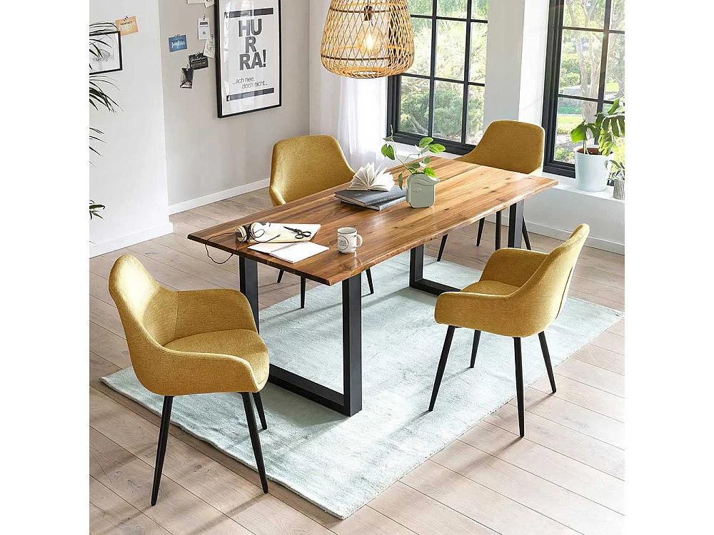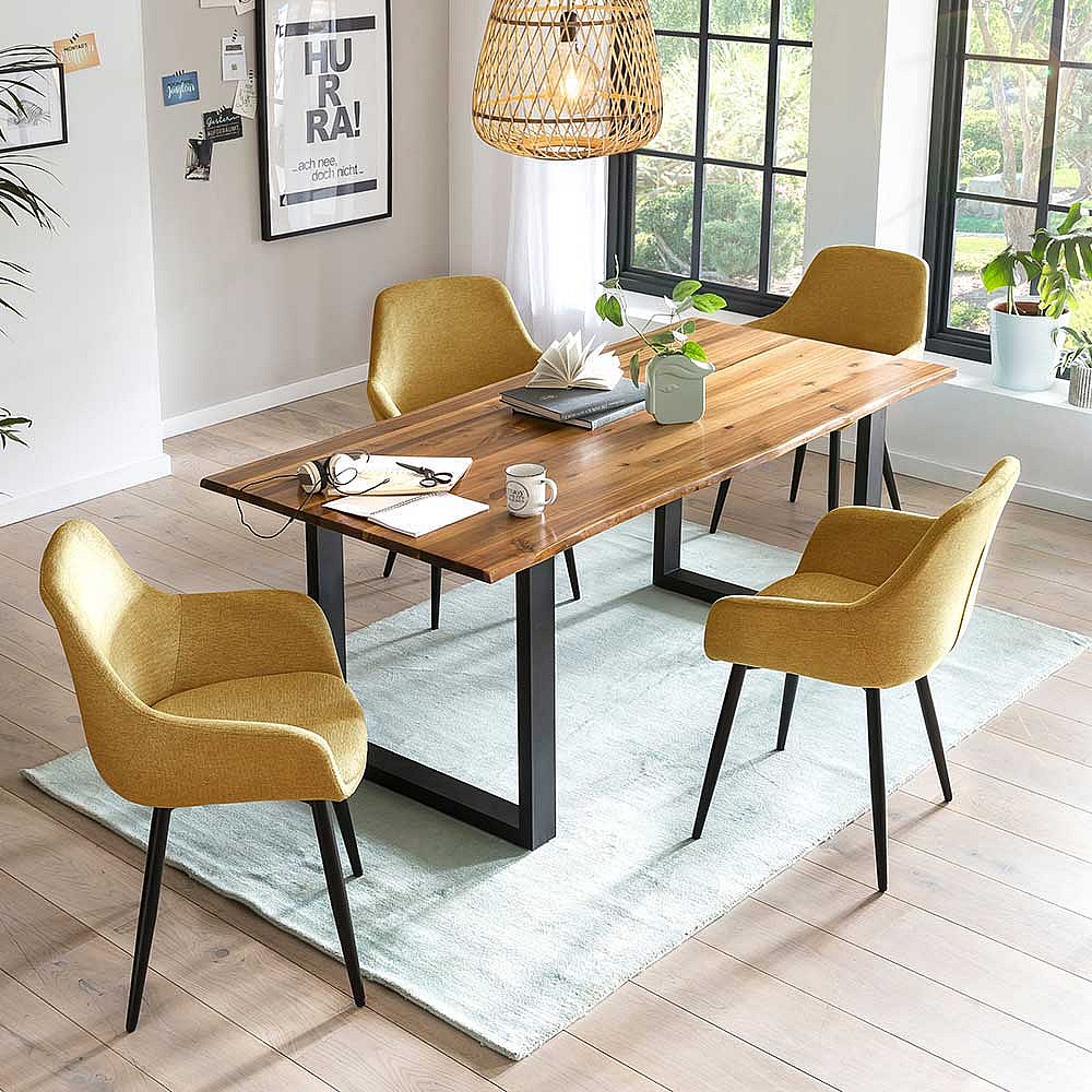 Armlehn Stühle in Gelb und Schwarz Stoffbezug (2er Set)