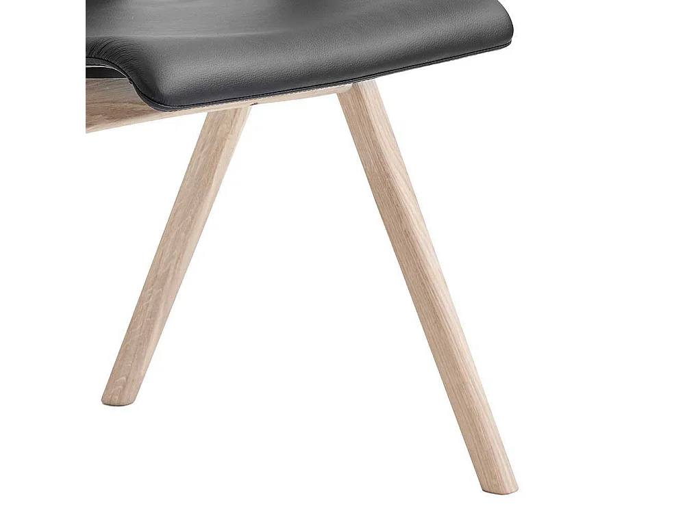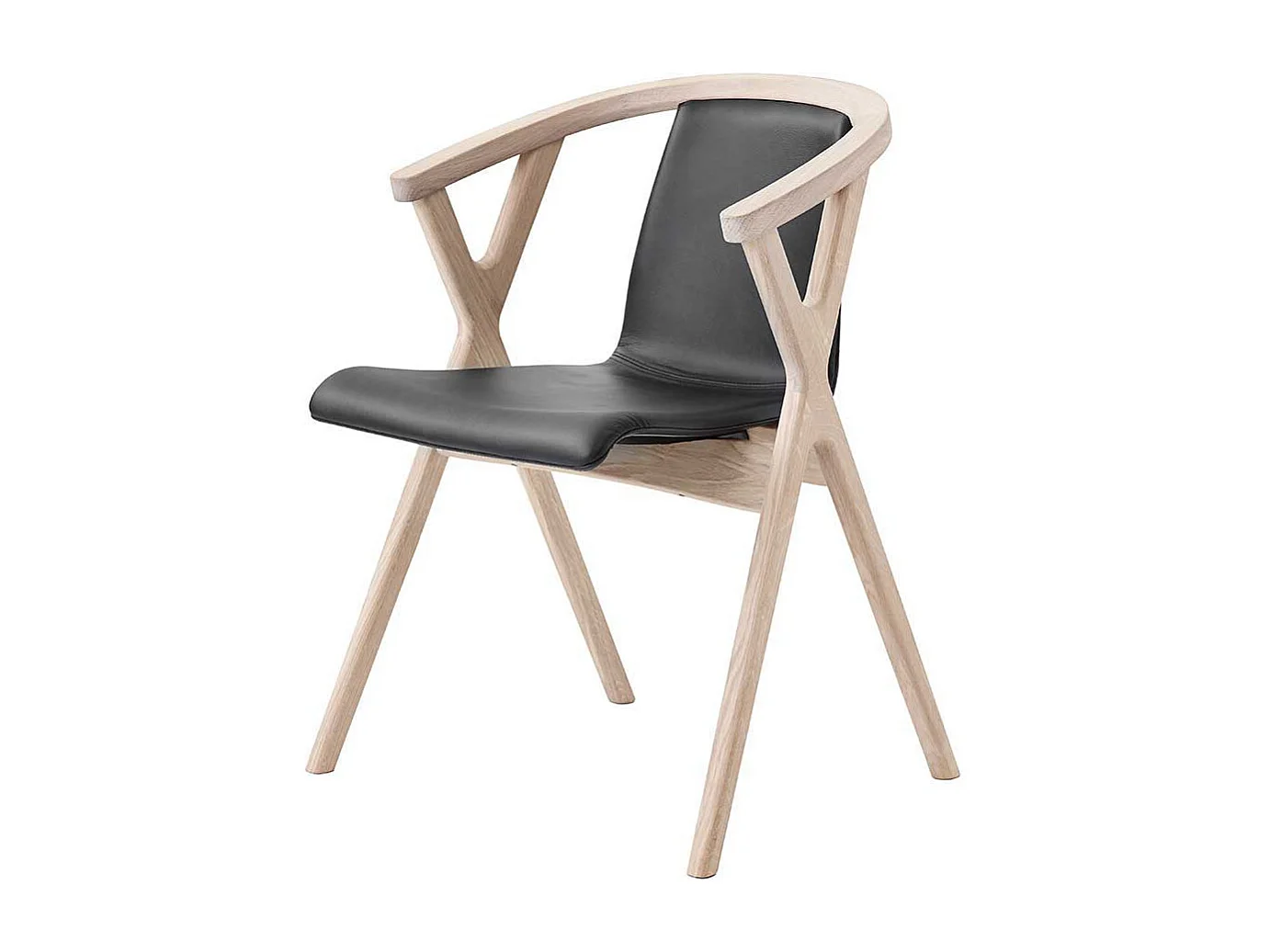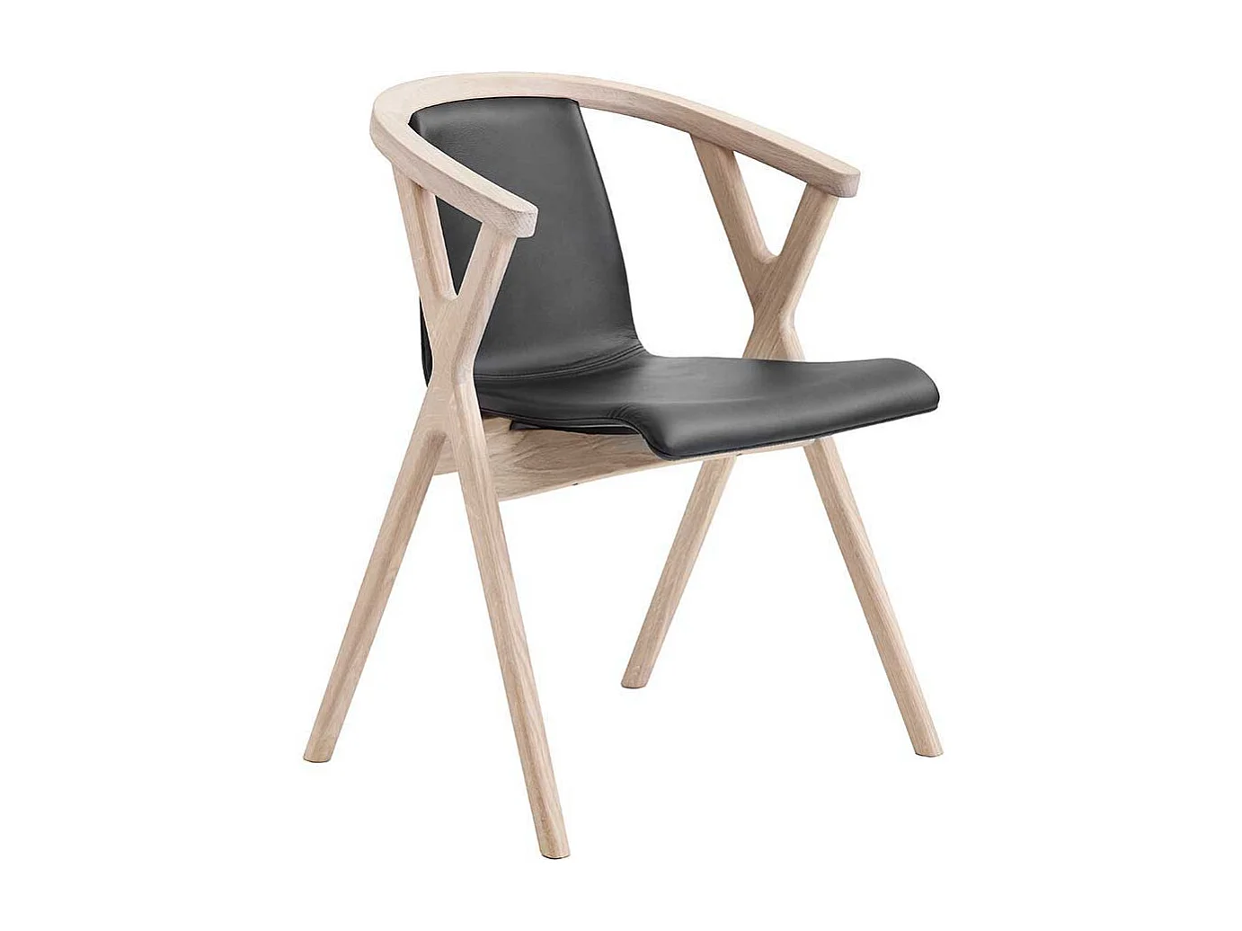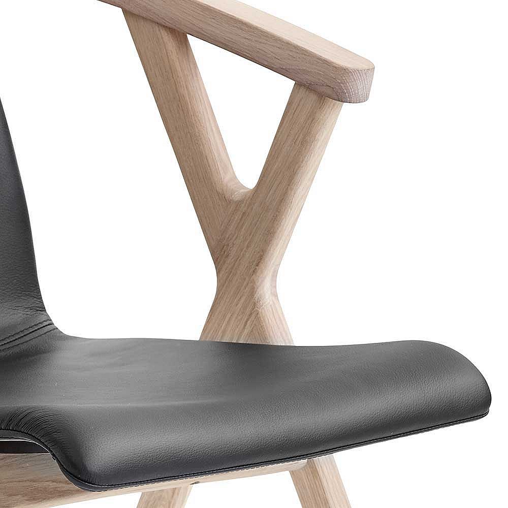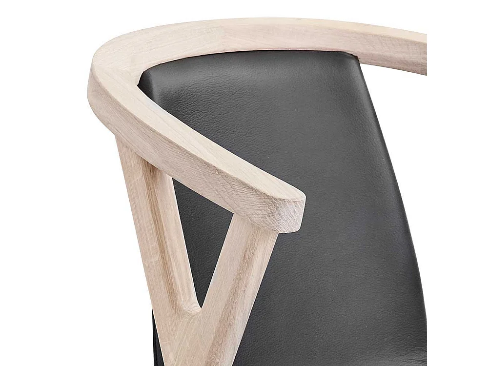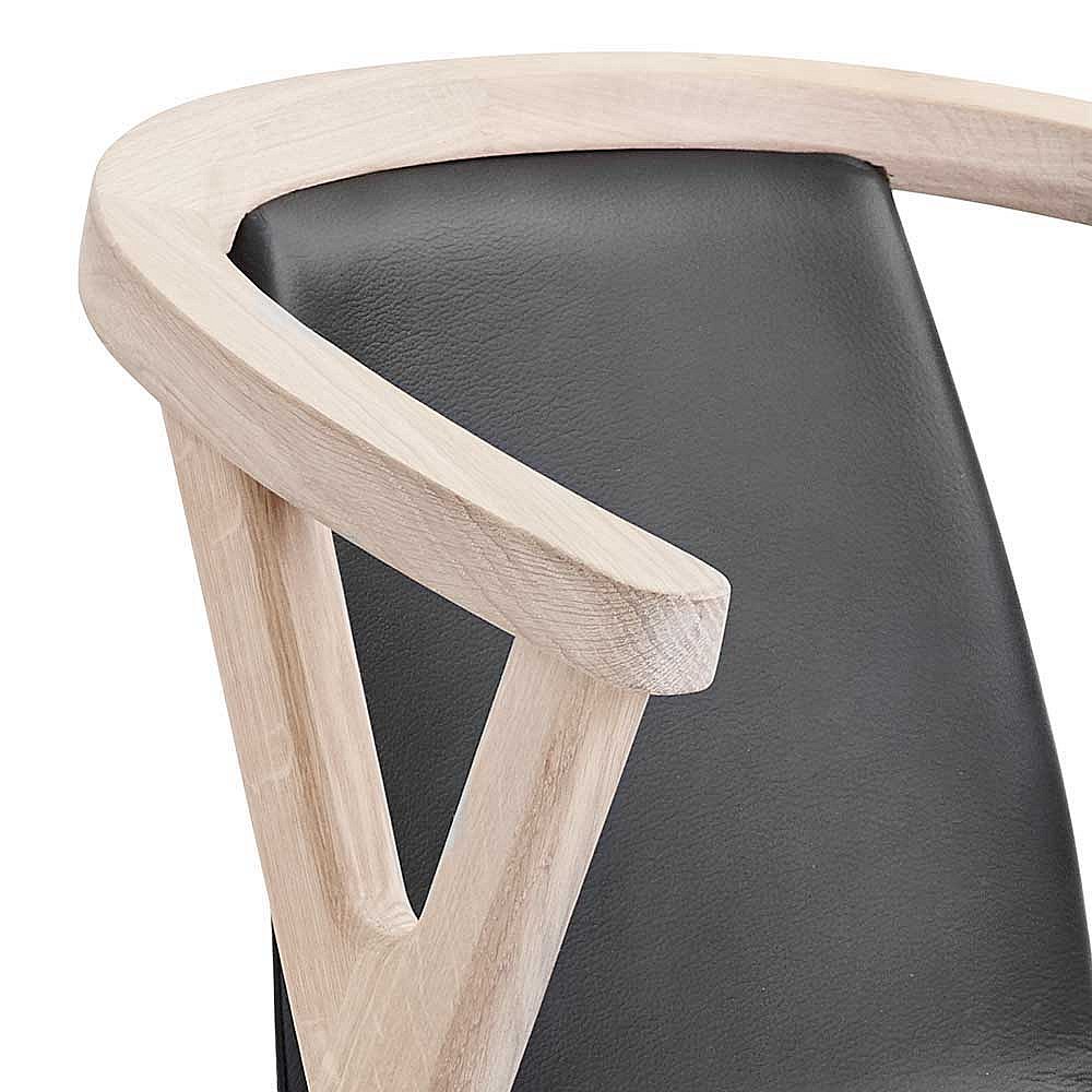 Armlehnen Esszimmerstuhl aus Eiche Massivholz und Leder Schwarz und Eiche Bianco