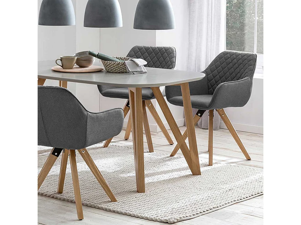Armlehnen Polsterstühle in Grau Webstoff Eiche Massivholzgestell (2er Set)