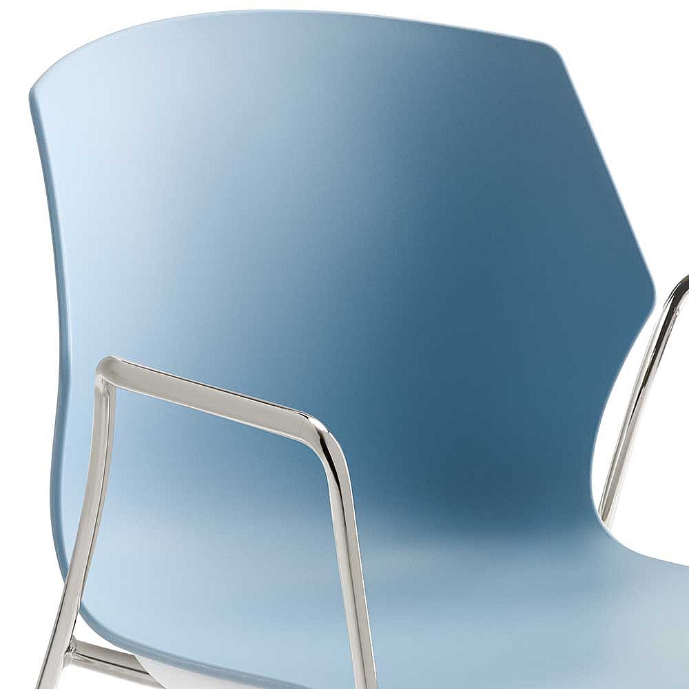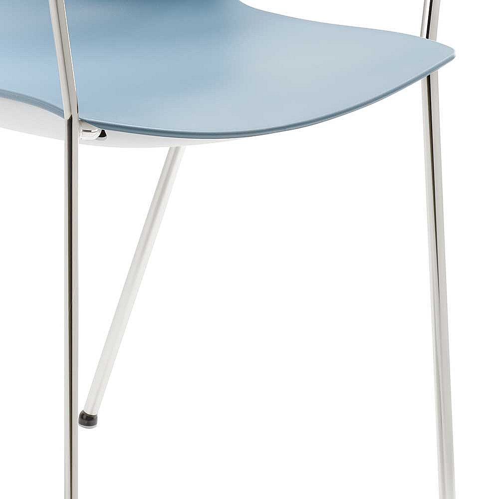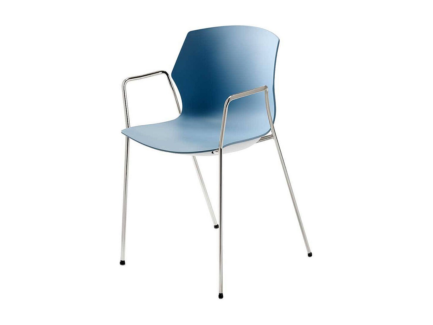 Armlehnenstuhl in Blaugrau Kunststoff und verchromtem Metall