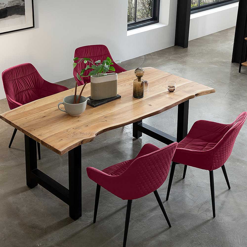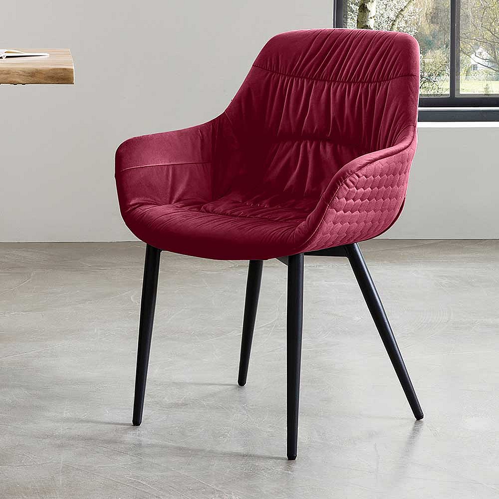 Armlehnenstuhl in Rot Samt Ziernähten