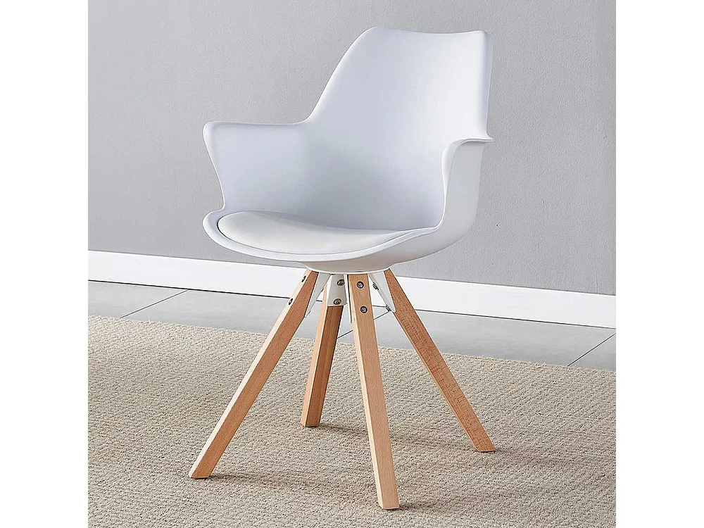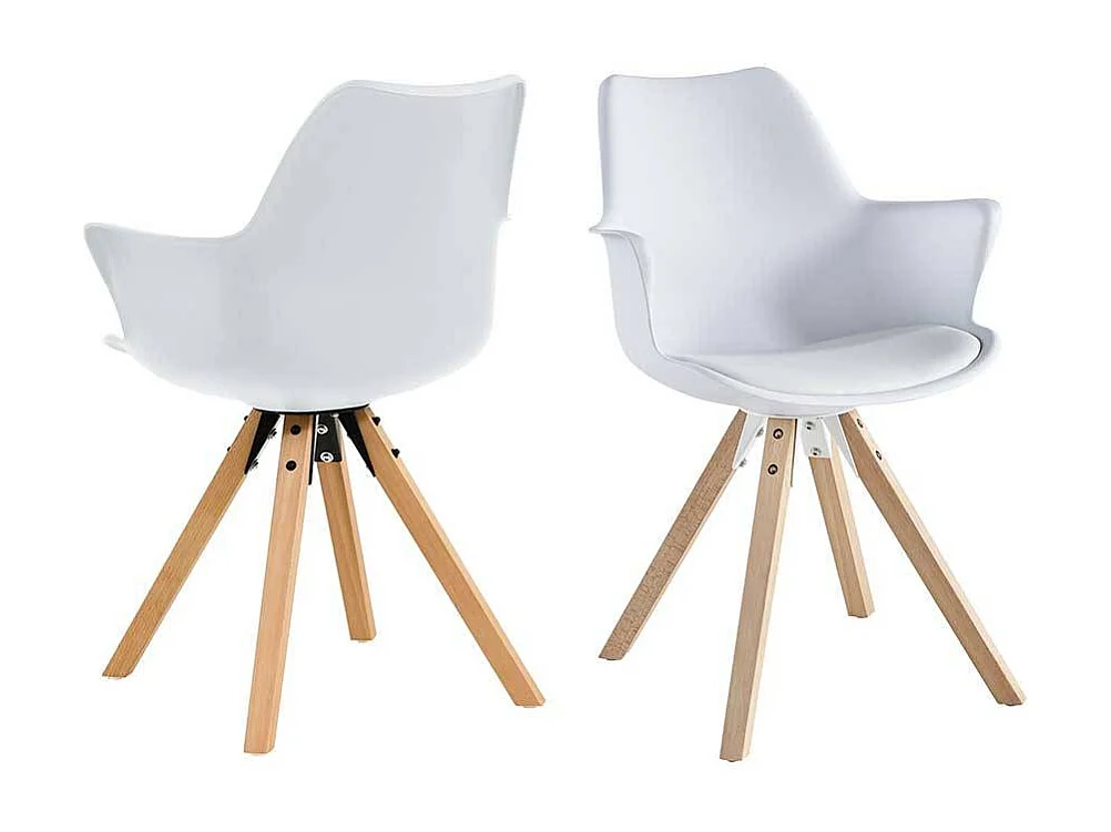 Armlehnenstuhl mit Kunststoff Schale Weiß und Eichefarben (2er Set)