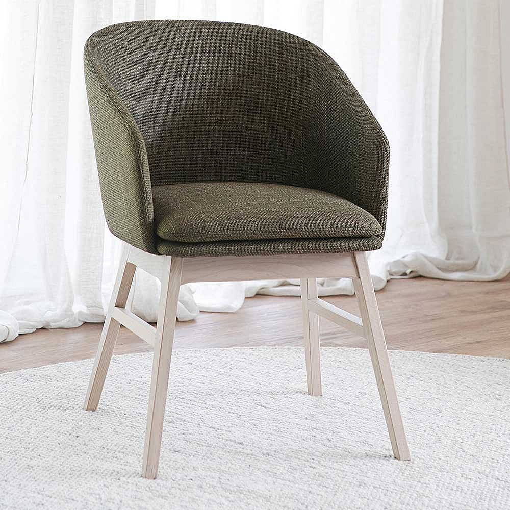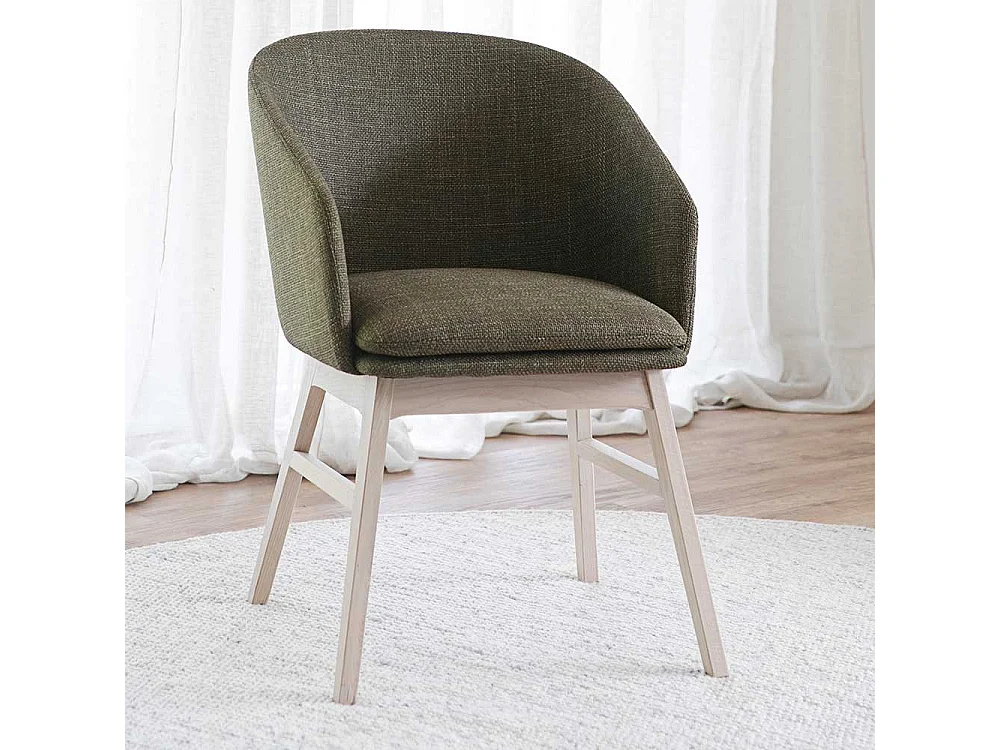 Armlehnenstuhl Set in Dunkelgrün Holz White Wash (2er Set)
