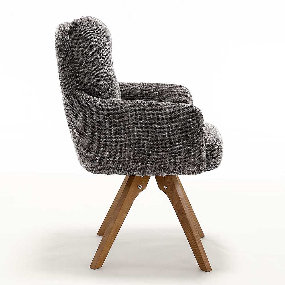 Armlehnenstuhl Stuhl Set in Anthrazit mit Gestell aus Massivholz (2er Set)