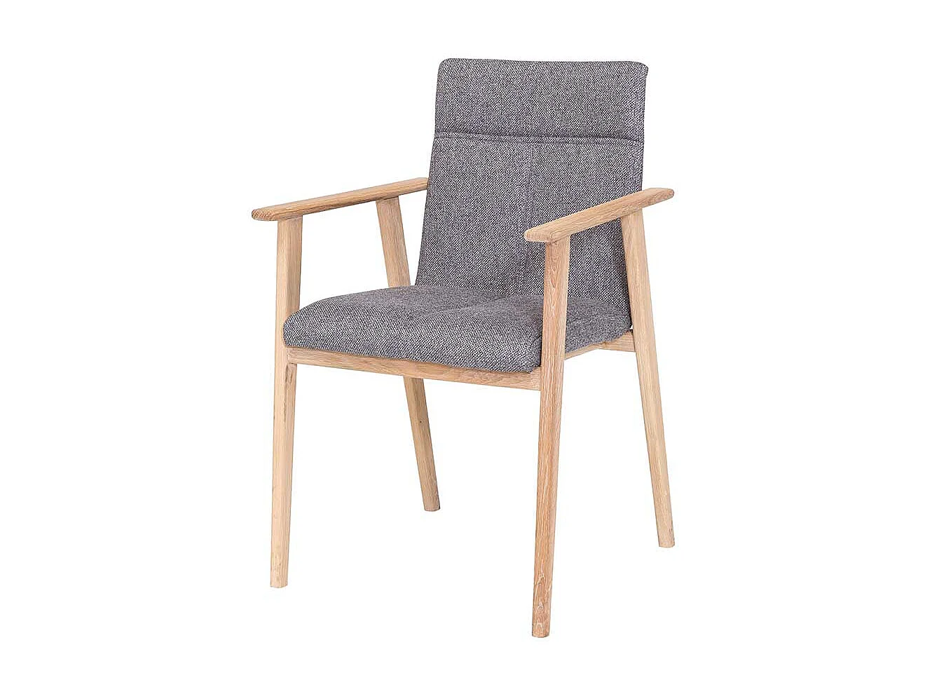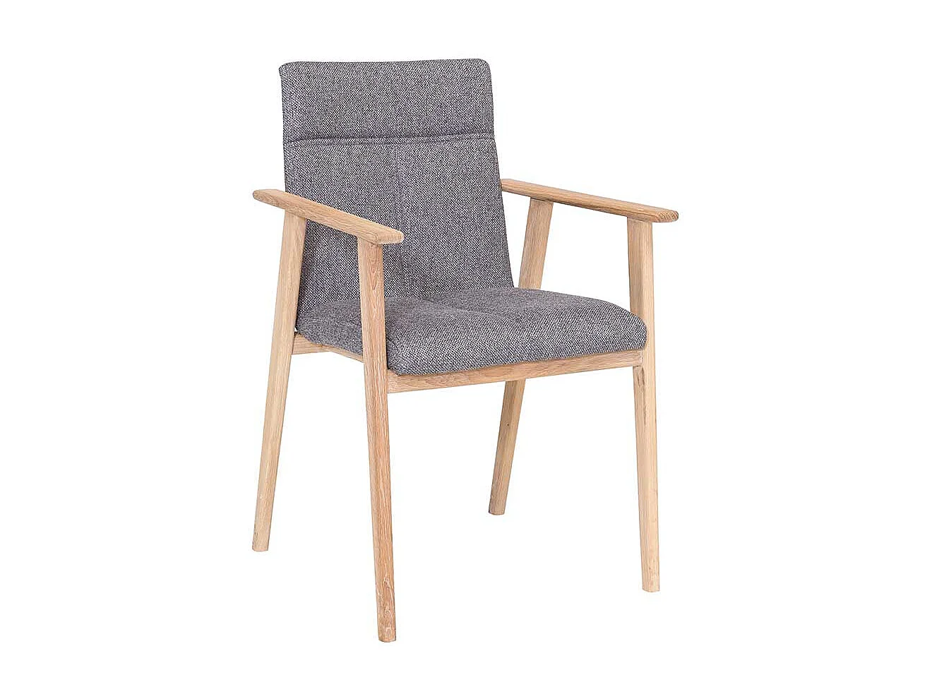 Armlehnstuhl in Grau Webstoff Eiche Bianco massiv
