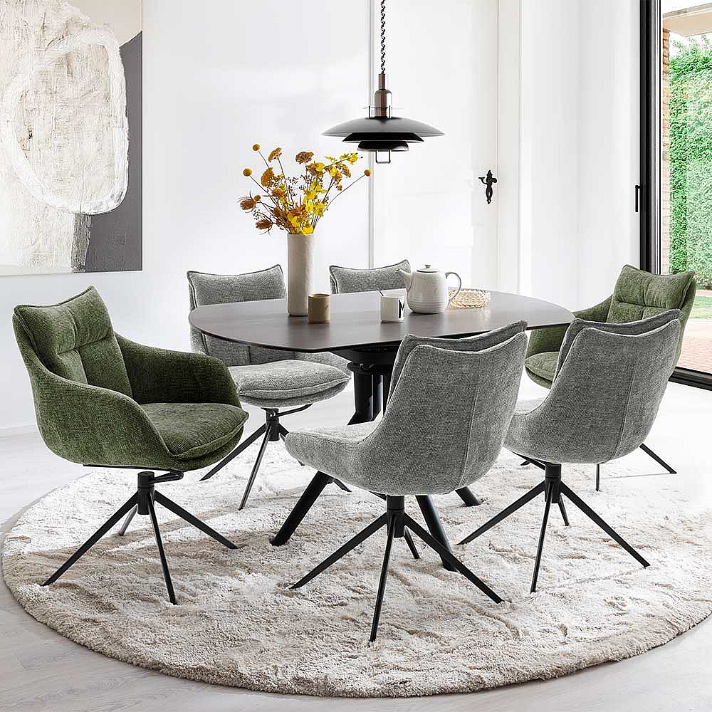 Armlehnstuhl in Oliv Grün Gestell aus Metall (2er Set)