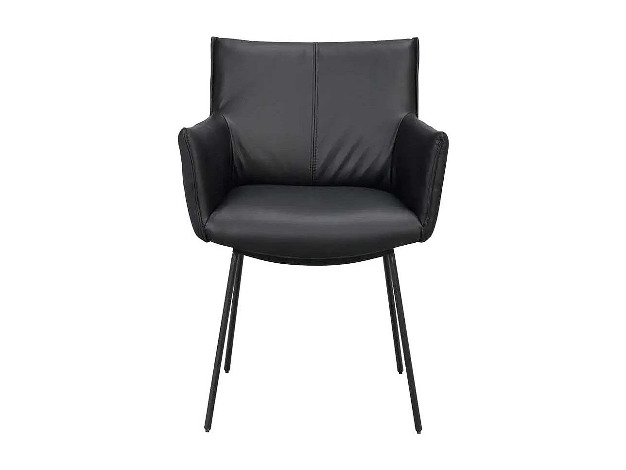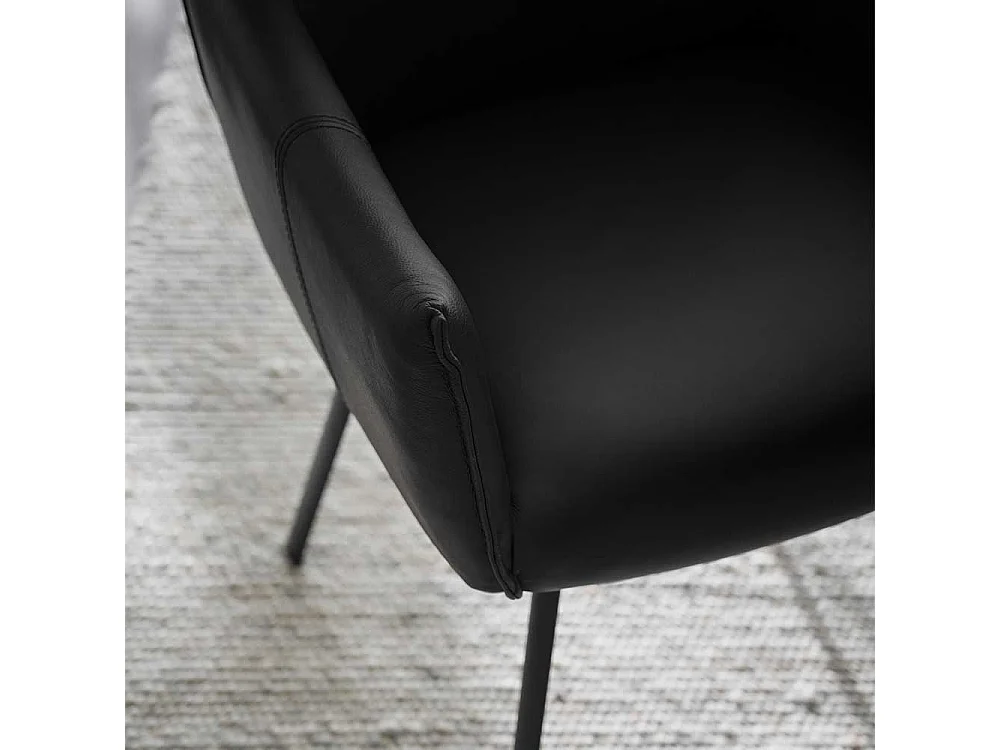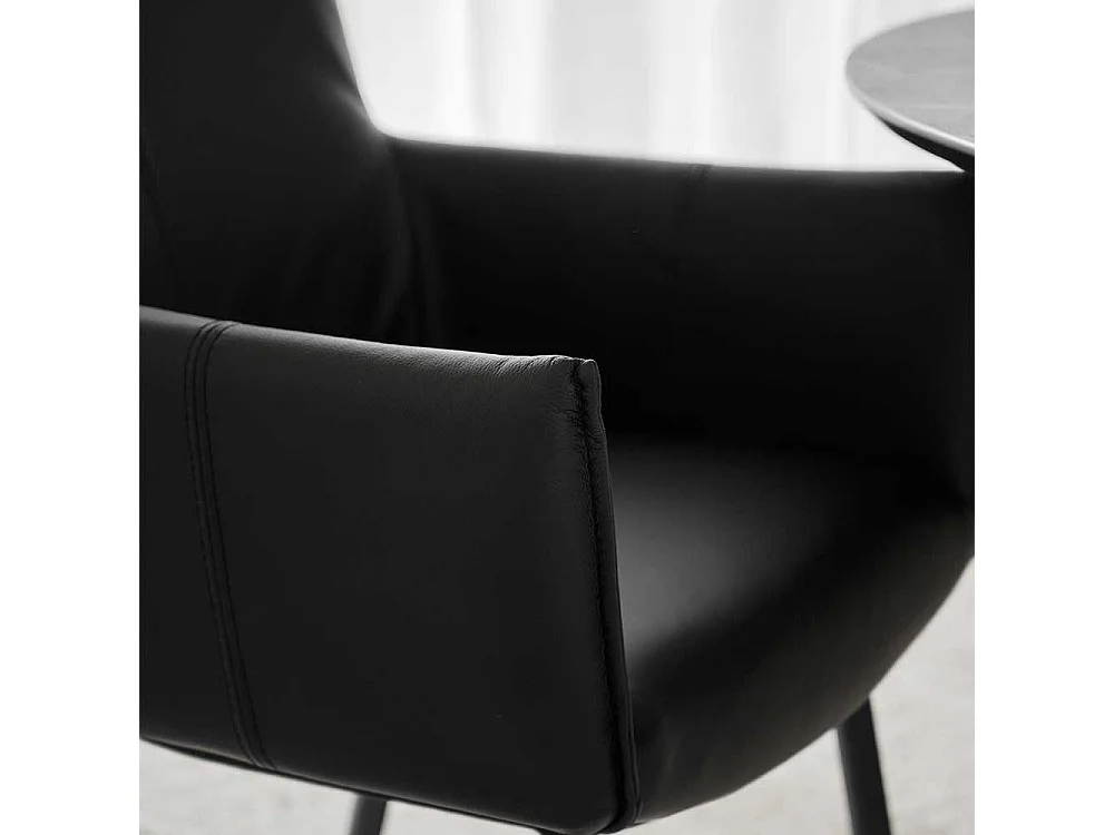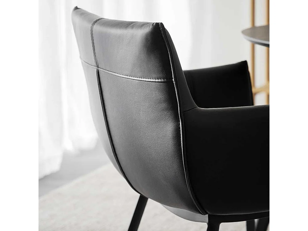 Armlehnstuhl Lederstuhl in Schwarz und gepolsterter Rückenlehne (2er Set)