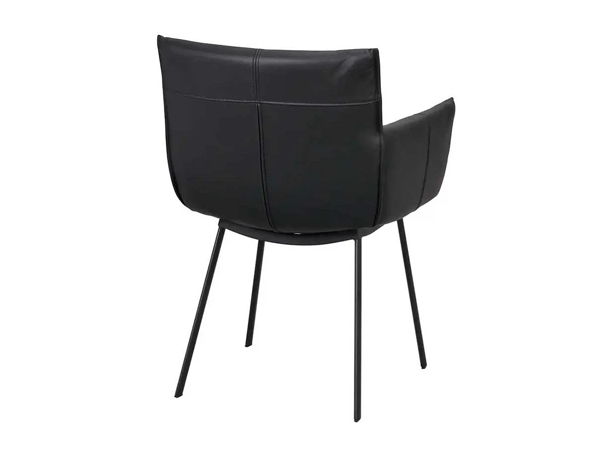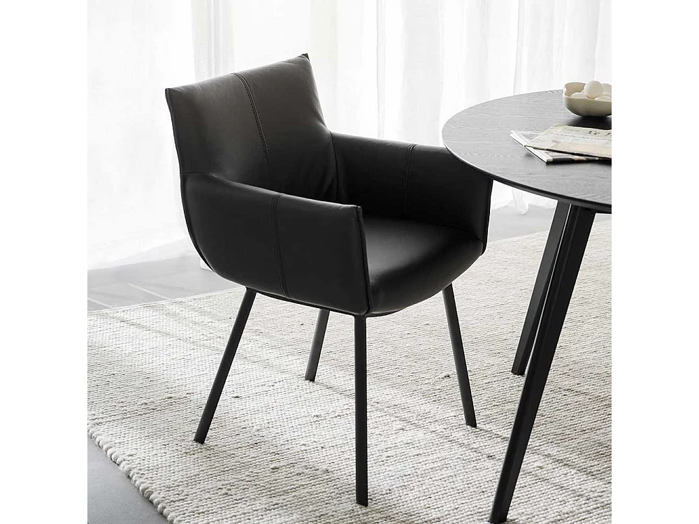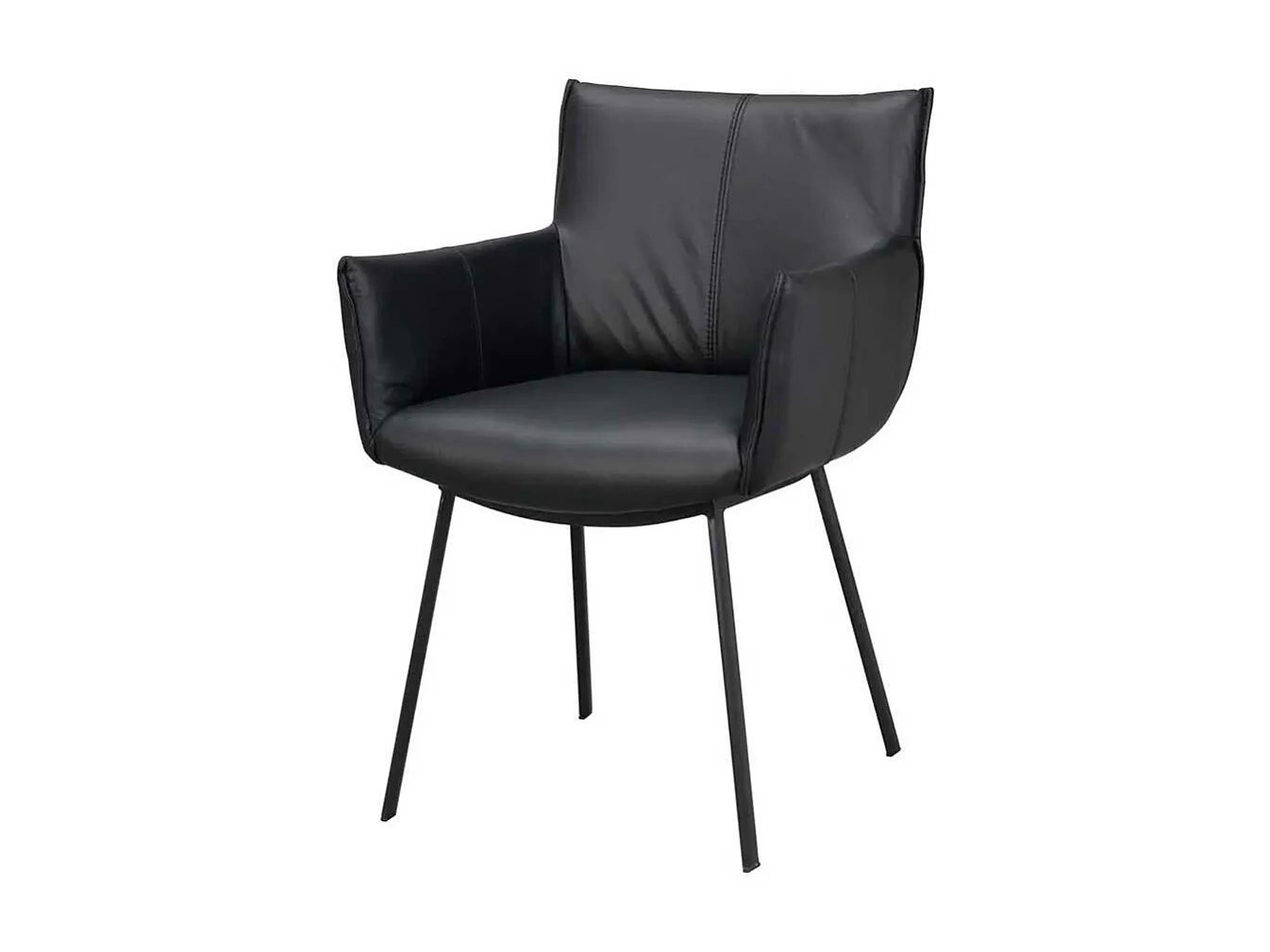 Armlehnstuhl Lederstuhl in Schwarz und gepolsterter Rückenlehne (2er Set)