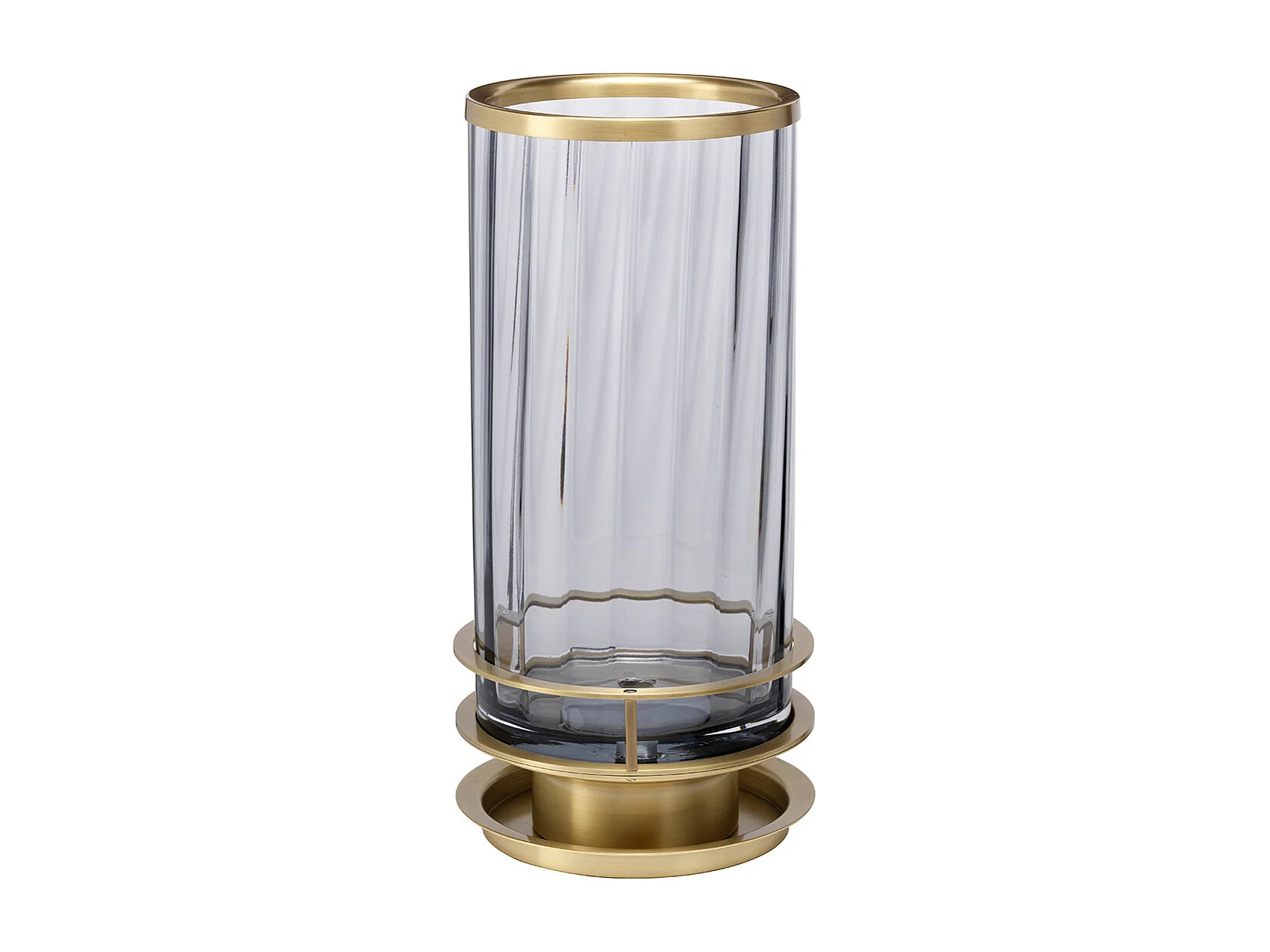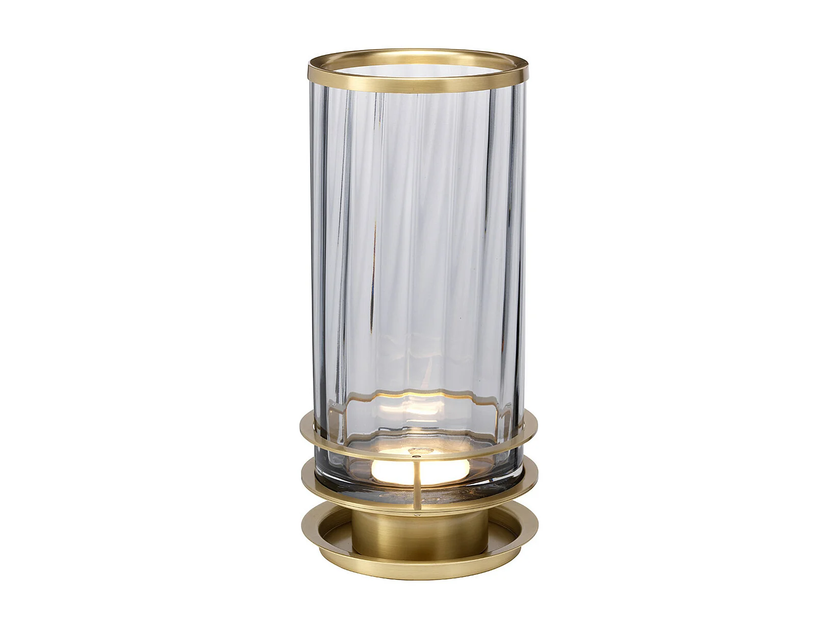 Arno Tischlampe Metallarbeiten Messing gealtert, Rauchglas