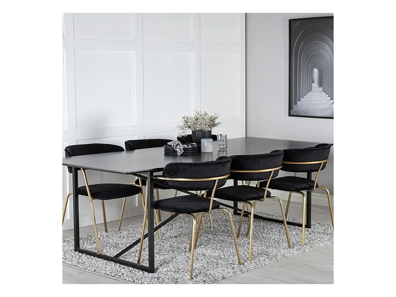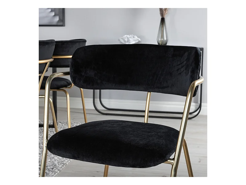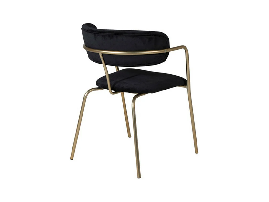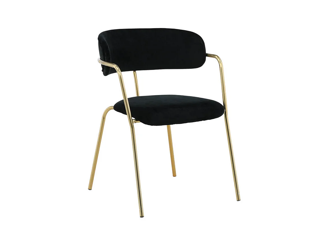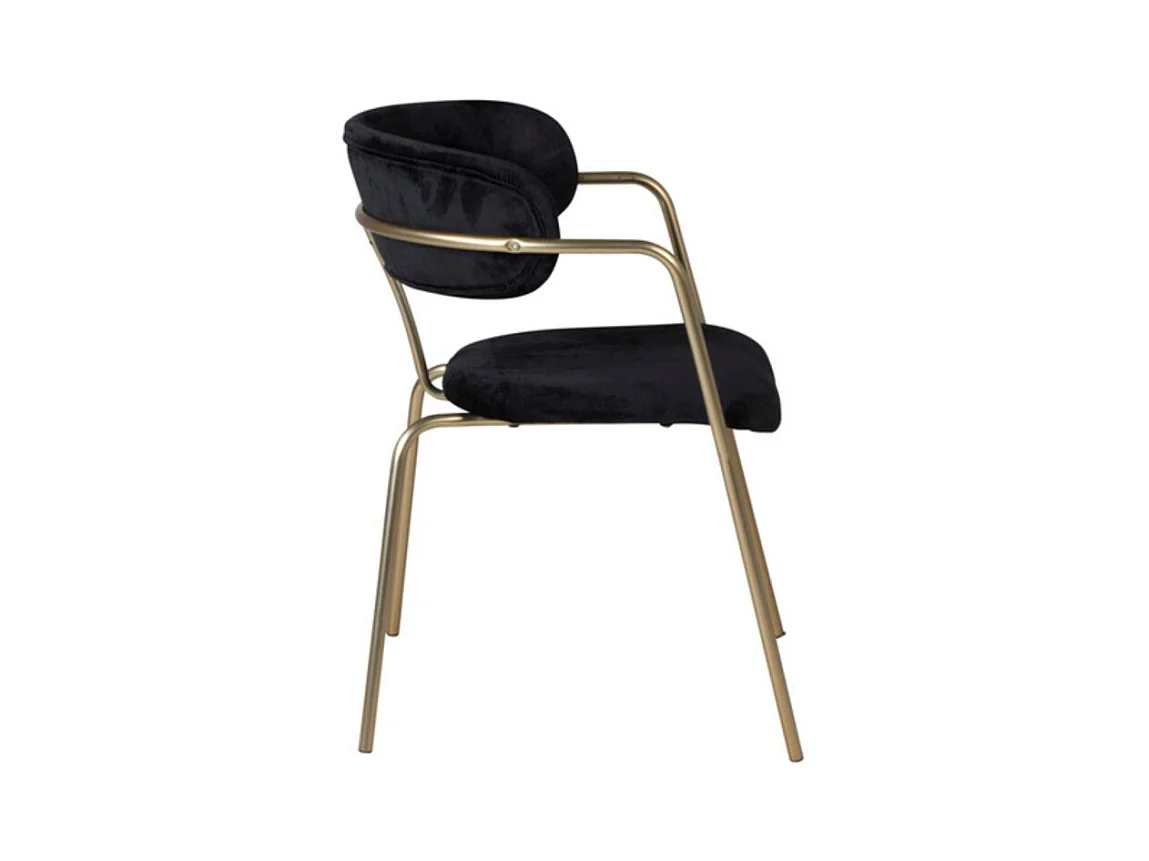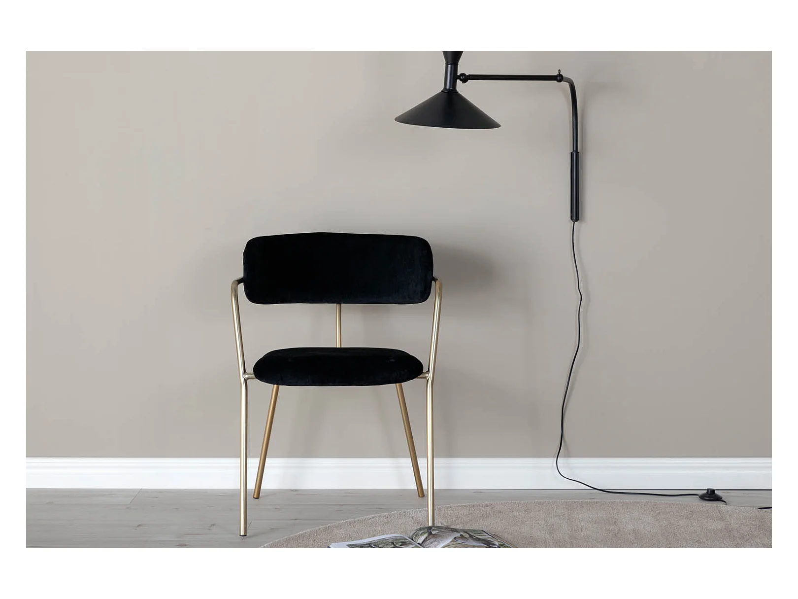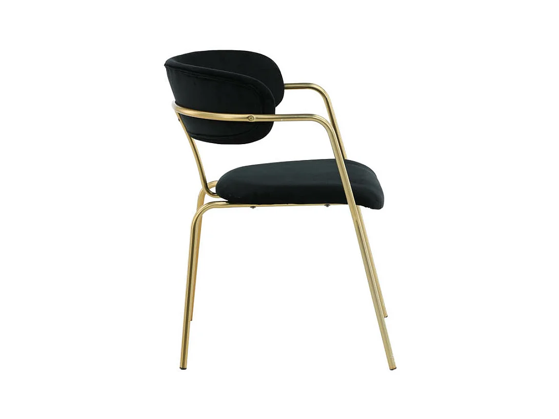Arrow Esszimmerstuhl mit Armlehne, Velour schwarz, Messing dekor.
