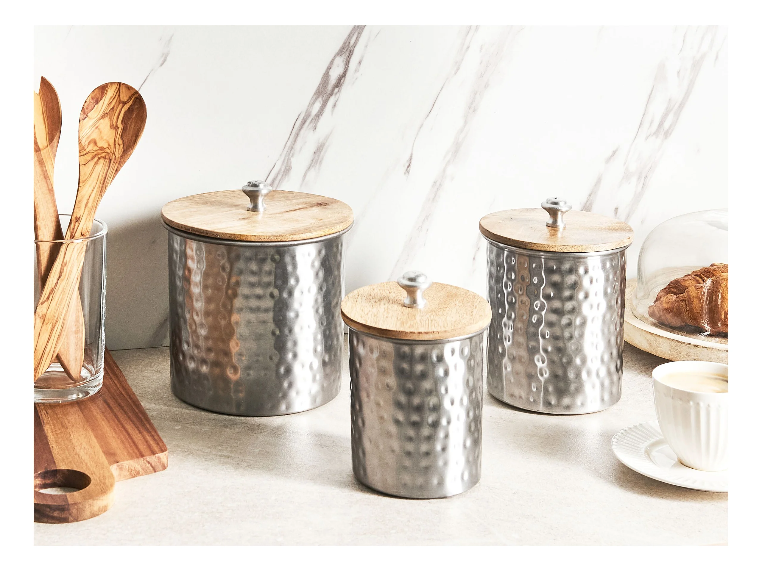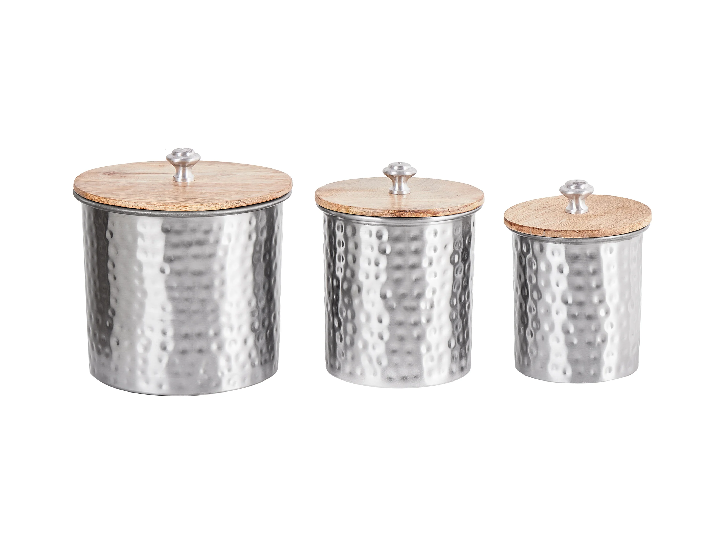 Dekorative Metalldosen im 3er Set mit Holzdeckeln Glamour Look silber Alexandria