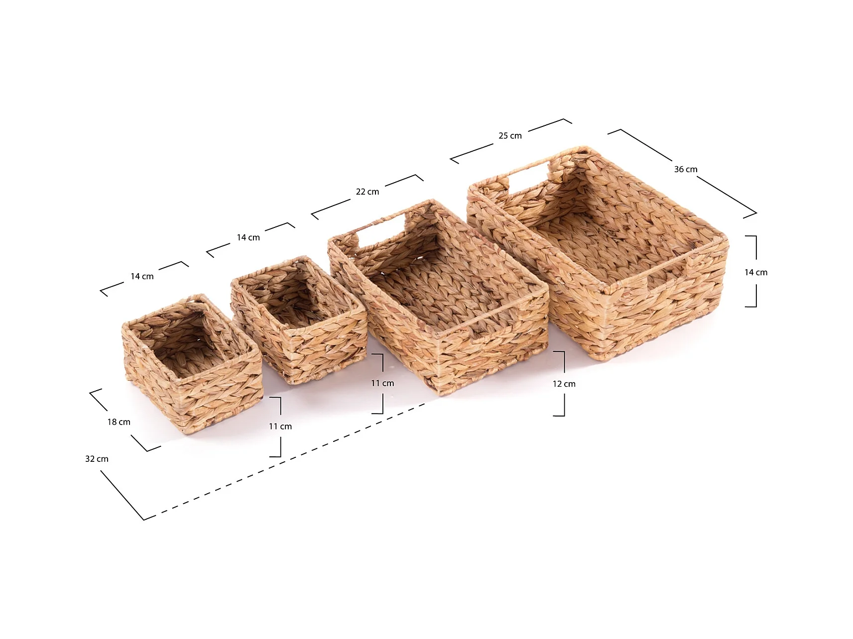 AUFBEWAHRUNGSBOX-SET Cesto II 4-teilig Wasserhyazinthe geflochten, 4 verschiedene Größen naturfarben